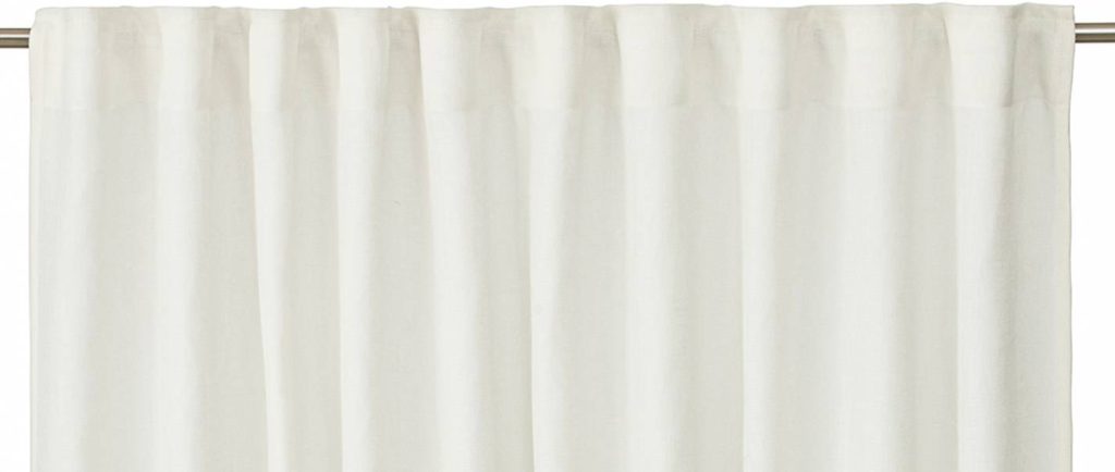 Yksivärinen verhokappa pestyn tuntuista kangasta. Keskitheä kangas, struktuuripinta. Verhossa on monitoiminauha yläreunassa sekä päärmätyt sivut ja alareuna.