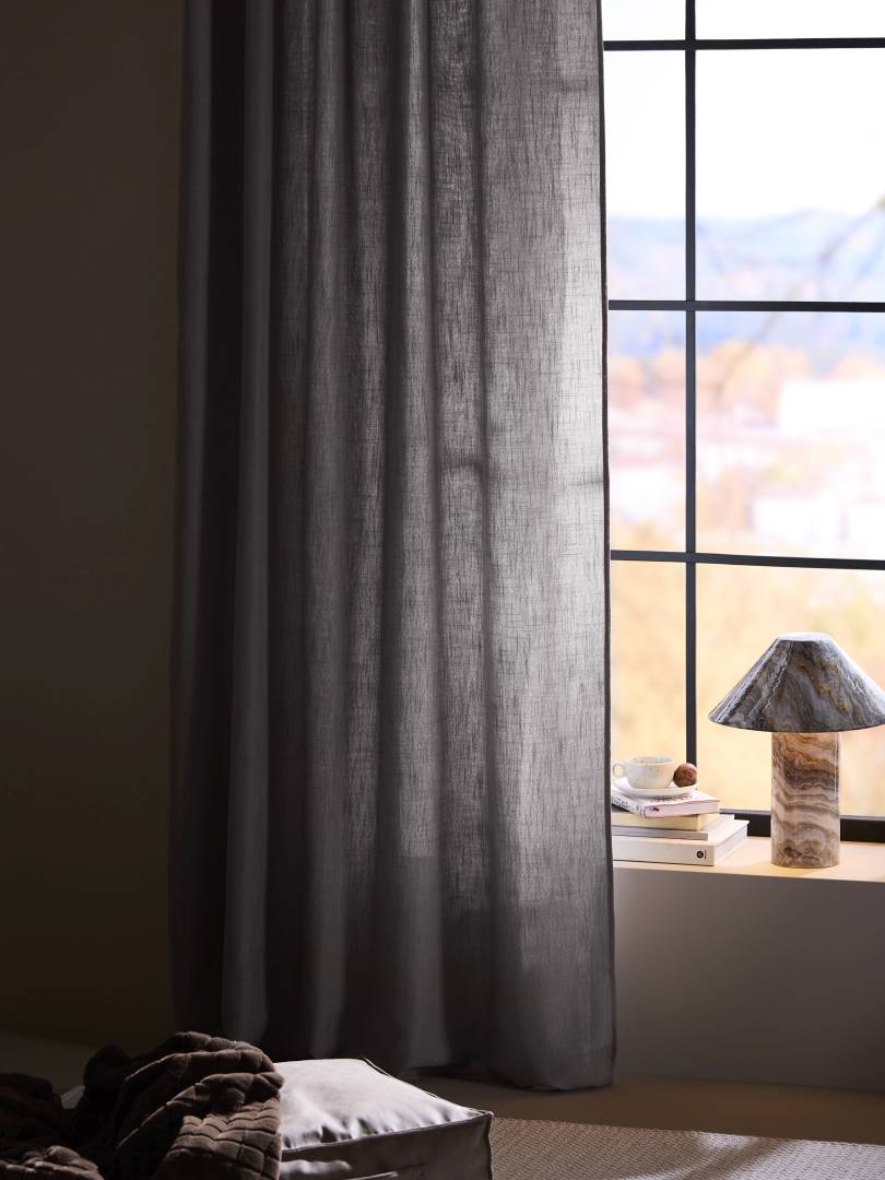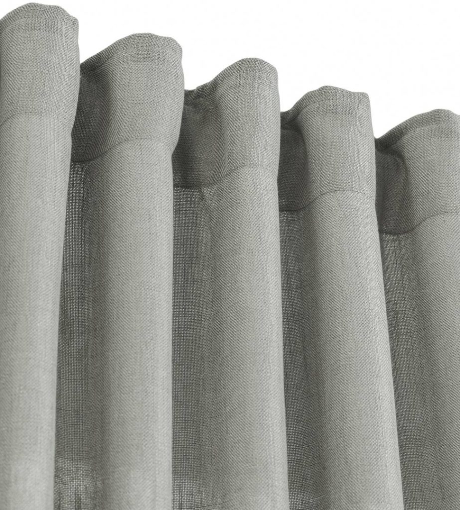 Pitkät verhot mattapintaista pestyn tuntuista kangasta. Verhoissa on monitoiminauha yläreunassa, päärmätyt sivureunat ja yliluotteluommel alareunassa. Pakkaus sisältää 2 verhoa.