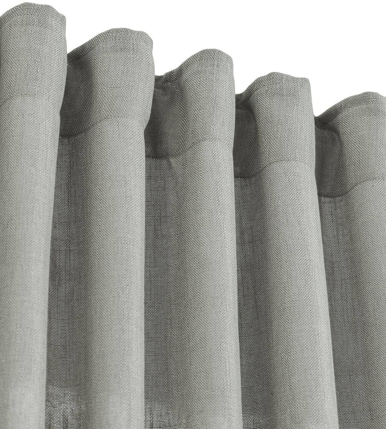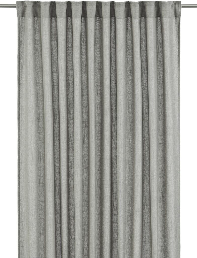 Pitkät verhot mattapintaista pestyn tuntuista kangasta. Verhoissa on monitoiminauha yläreunassa, päärmätyt sivureunat ja yliluotteluommel alareunassa. Pakkaus sisältää 2 verhoa.