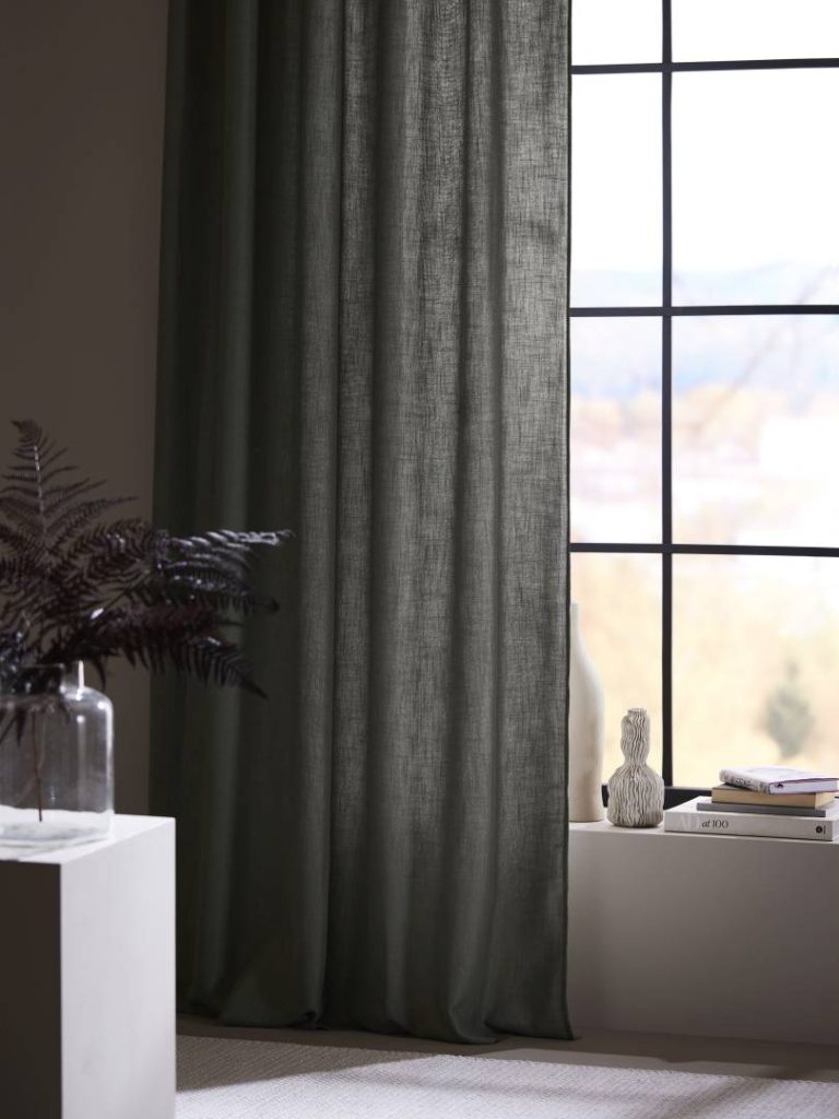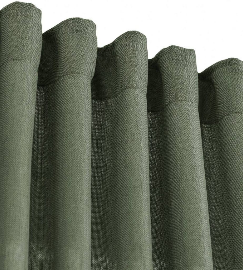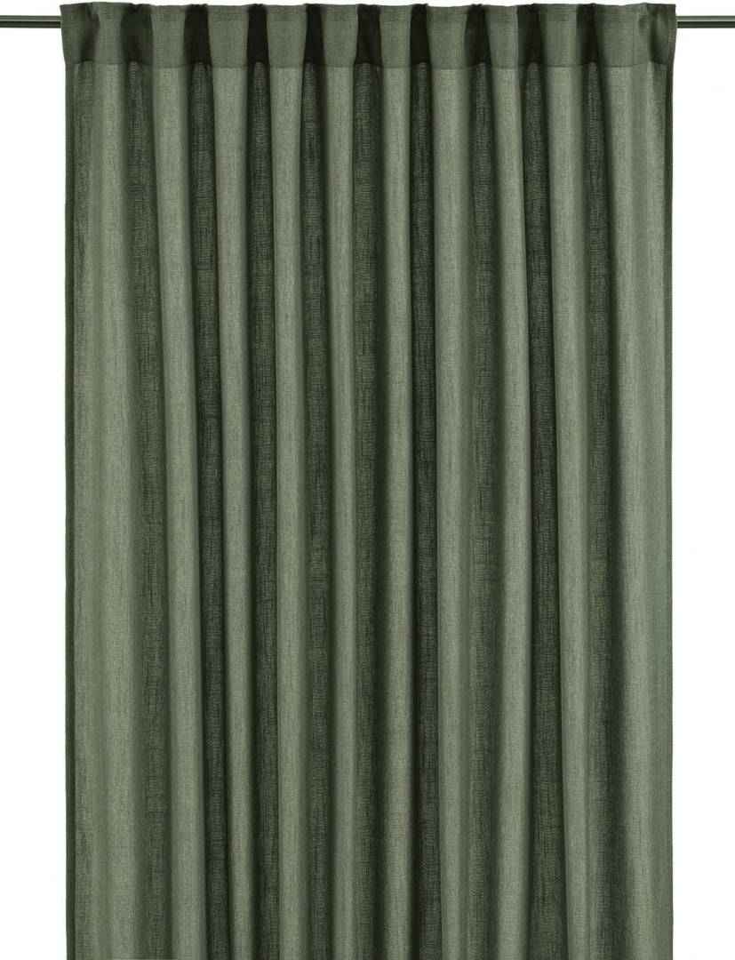 Pitkät verhot mattapintaista pestyn tuntuista kangasta. Verhoissa on monitoiminauha yläreunassa, päärmätyt sivureunat ja yliluotteluommel alareunassa. Pakkaus sisältää 2 verhoa.