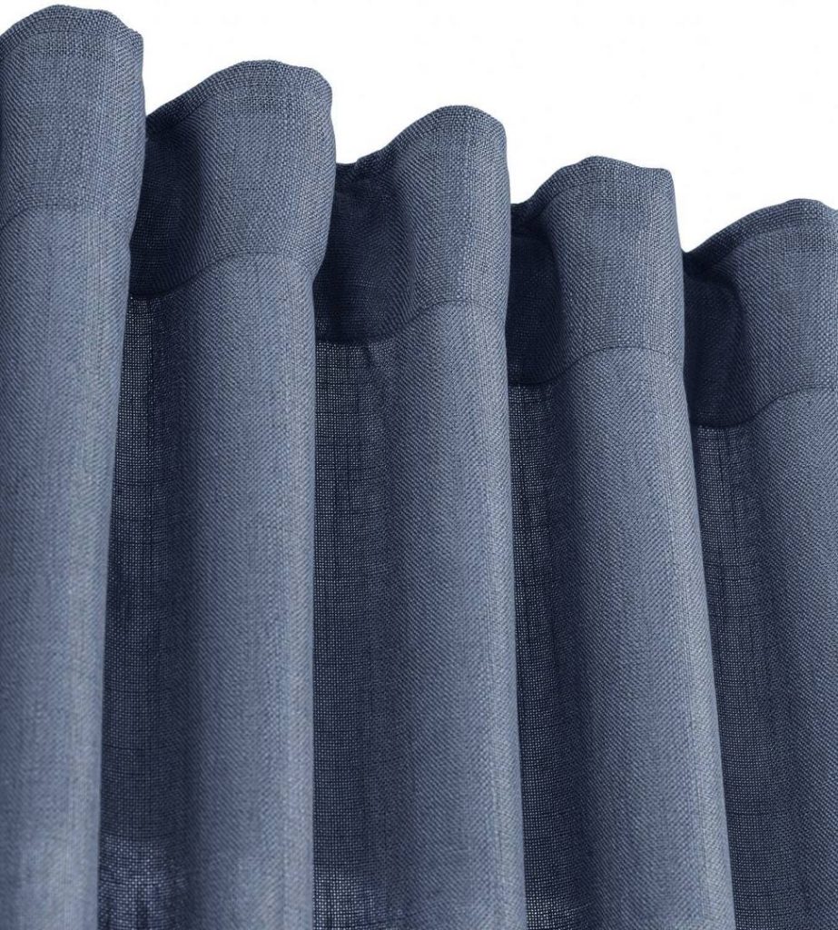 Pitkät verhot mattapintaista pestyn tuntuista kangasta. Verhoissa on monitoiminauha yläreunassa, päärmätyt sivureunat ja yliluotteluommel alareunassa. Pakkaus sisältää 2 verhoa.