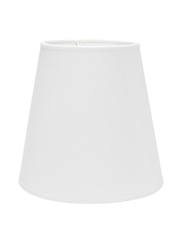 Lampunvarjostin E27-ylälaippakiinnityksellä, pellavakangasta. Valkoinen sisäpinta, rullatut reunat.