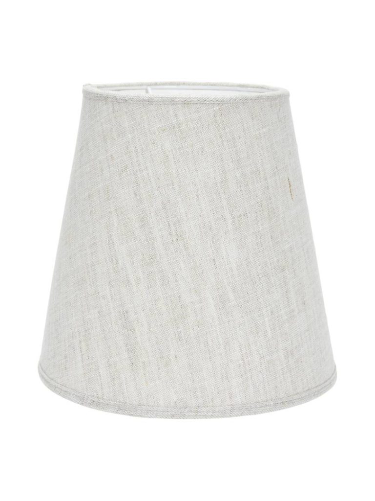Lampunvarjostin E27-ylälaippakiinnityksellä, pellavakangasta. Valkoinen sisäpinta, rullatut reunat.