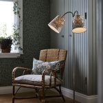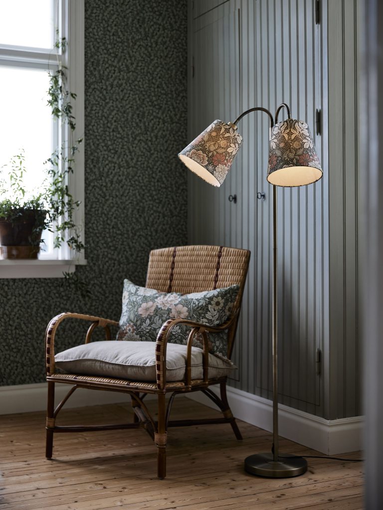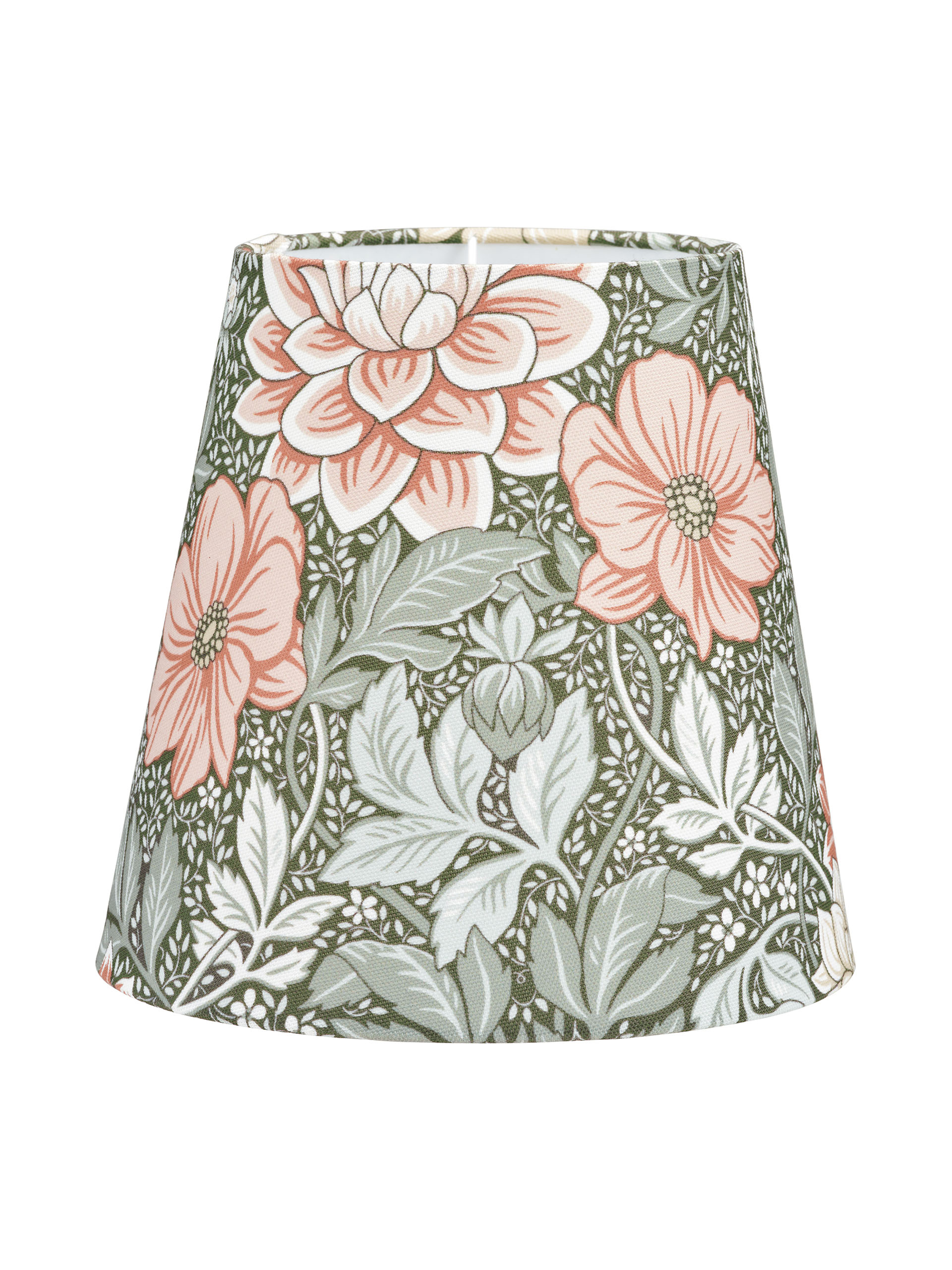 Dahlia-lampunvarjostin vihreän ja vaalean roosan värisenä. Varjostimet on luotu PR Homen ja Boråstapeterin yhteistyönä. Dahlia Garden -kangas on 100% kierrätettyä polyesteria,
