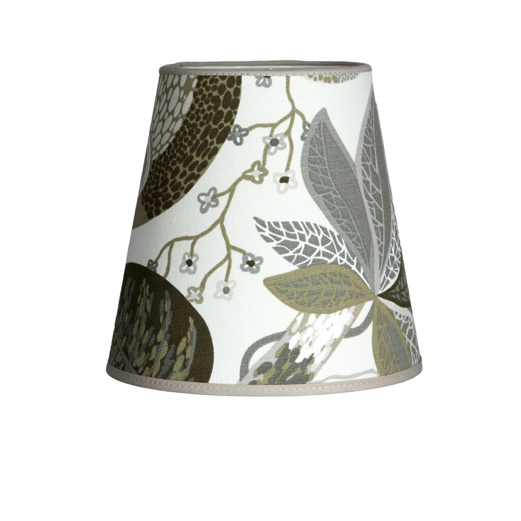 Lampunvarjostin puuvillaa, kankaassa kaunis kuviointi.
