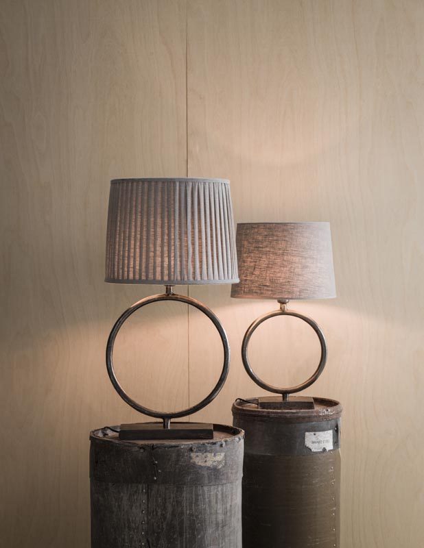 Pelkistetty ja tyylikäs metallinen lampunjalka, jossa on rustiikkinen pinta. Sopii esimerkiksi kapealle ikkunalaudalle ovaalinmuotoisen varjostimen kanssa.