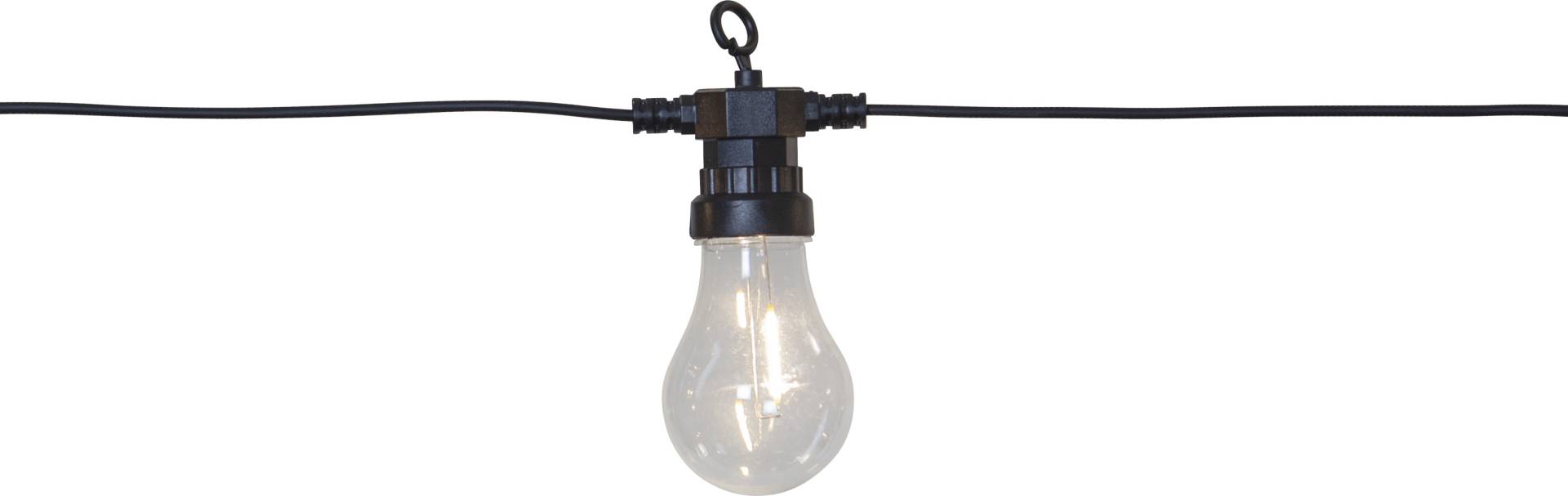 405 cm pitkä partyvalosarja 10 kirkkaalla muovilampulla, joissa on lämpimän valkoinen LED-filamentti. Sopii tunnelmavalaistukseksi sekä arkeen että juhlaan.