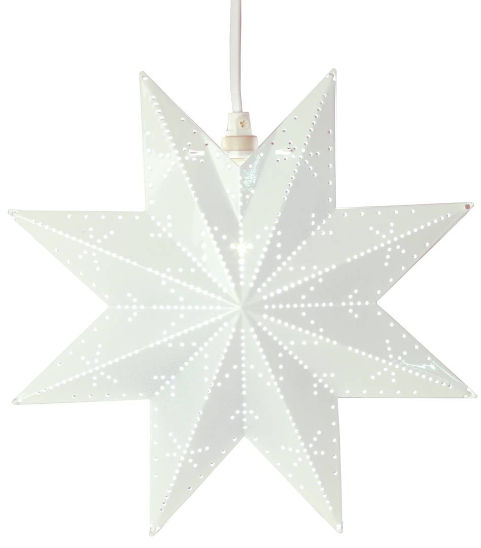 Klassisen mallinen valkoinen metallitähti sisäkäyttöön. Tähdessä on hienoja yksityiskohtia ja paikka valonlähteelle. Kaunis adventtitähti, joka luo jouluista tunnelmaa kotiisi. Valmistettu Ruotsissa.
