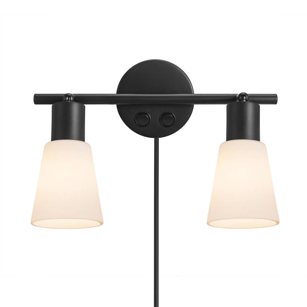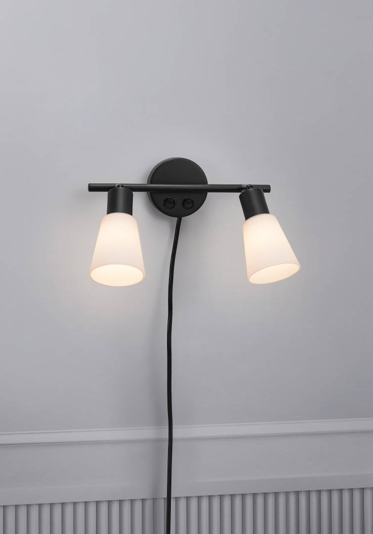 2-osainen seinävalaisin mustaa metallia, varjostimet opaalivalkoista lasia.