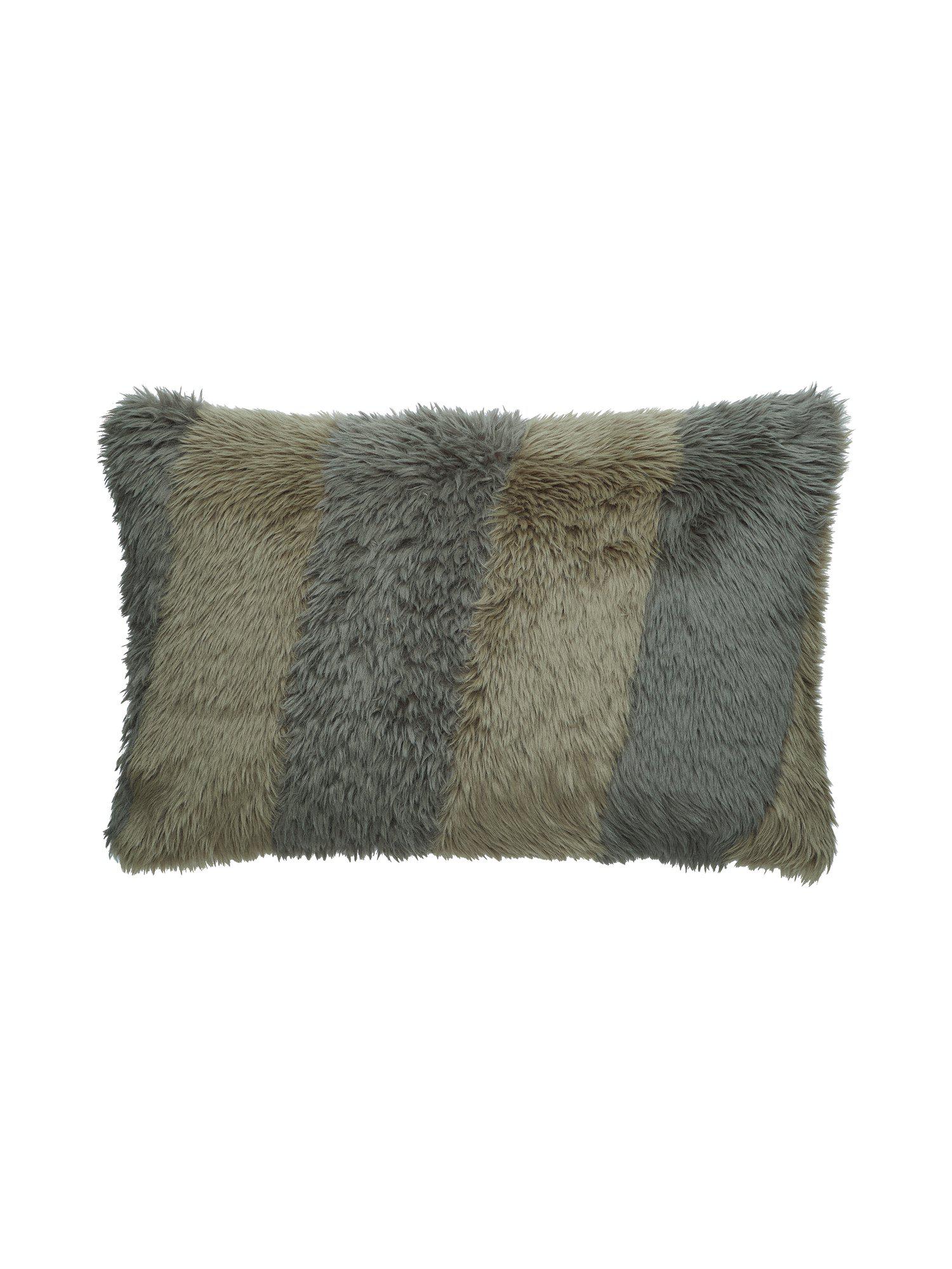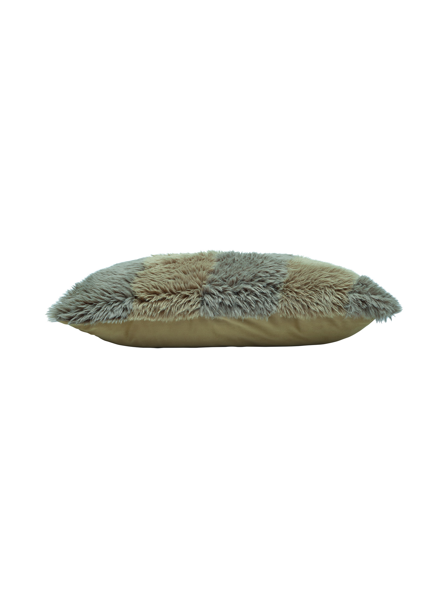 Tyynynpäällinen keinoturkista. Vetoketju alareunassa.