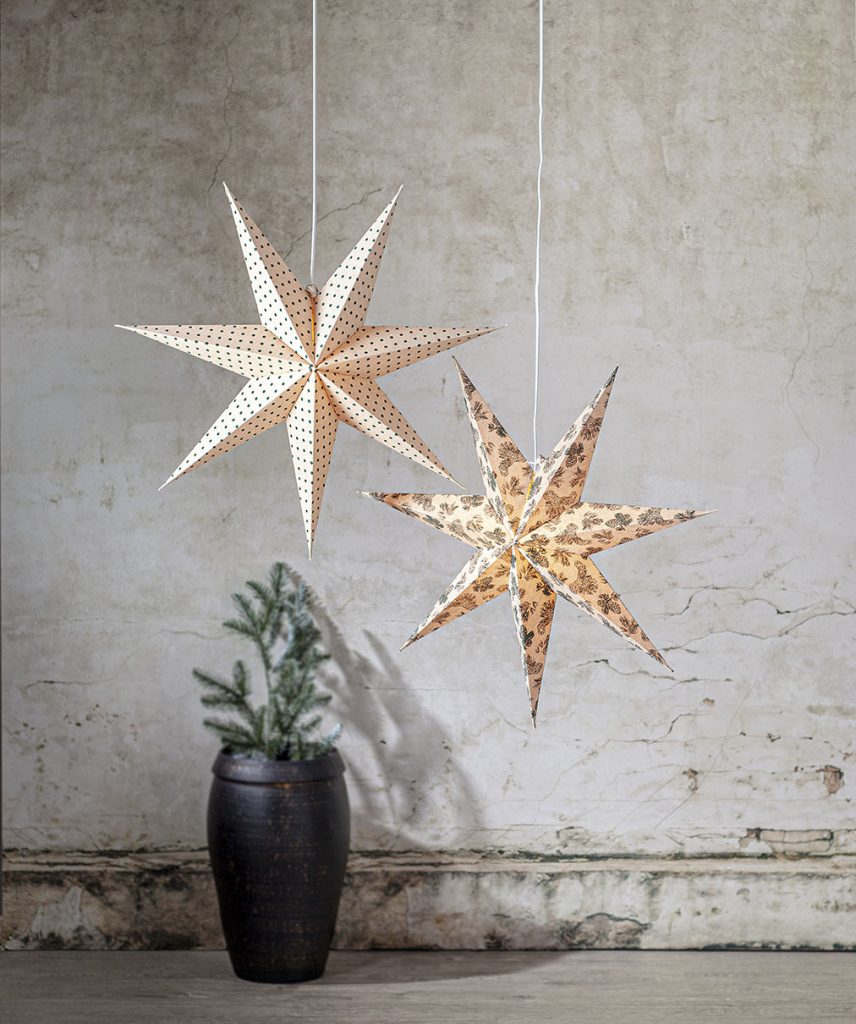 Cotton paperitähti beige/vihreä, kuvioitu, 60 cm