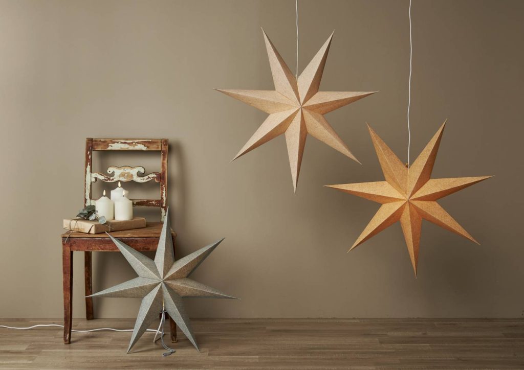 Moderni ja tyylikäs paperitähti, jonka pinta on puuvillakangasta.