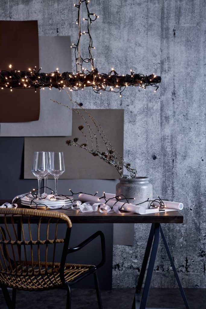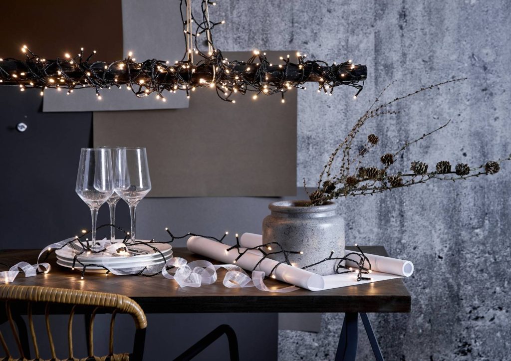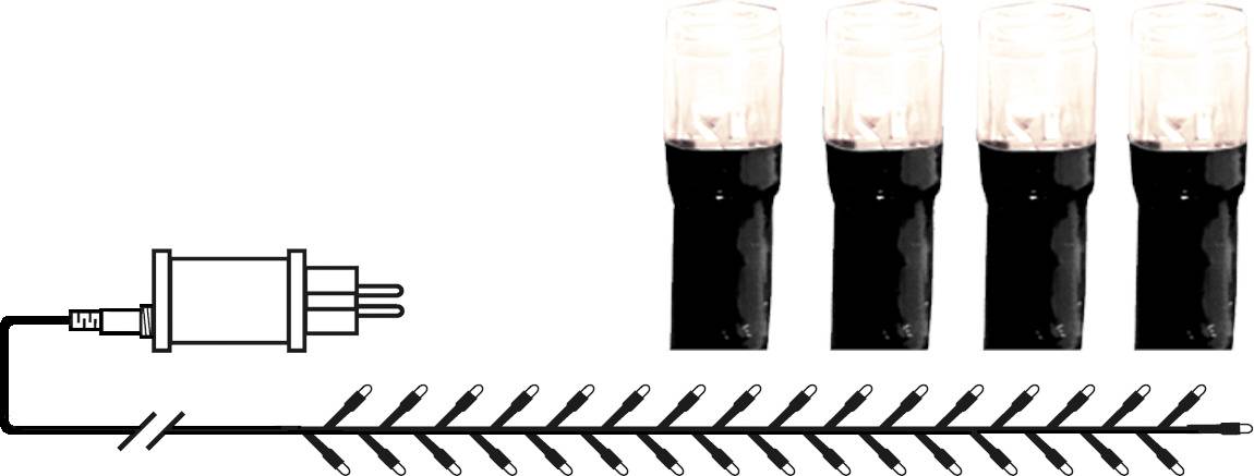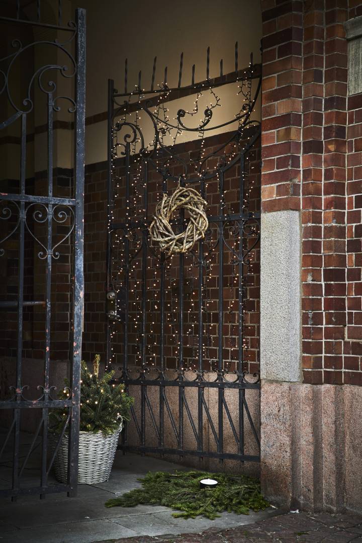 Ulkokäyttöön sopiva 3,6 metriä pitkä valosarja, jossa on mustassa kaapelissa 180 valkoista LED-valoa. Sopii hyvin talviseen, lumiseen maisemaan.