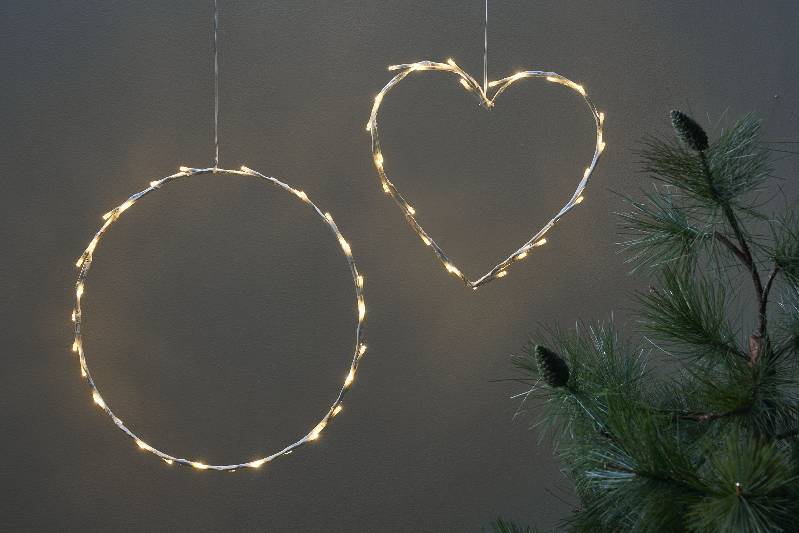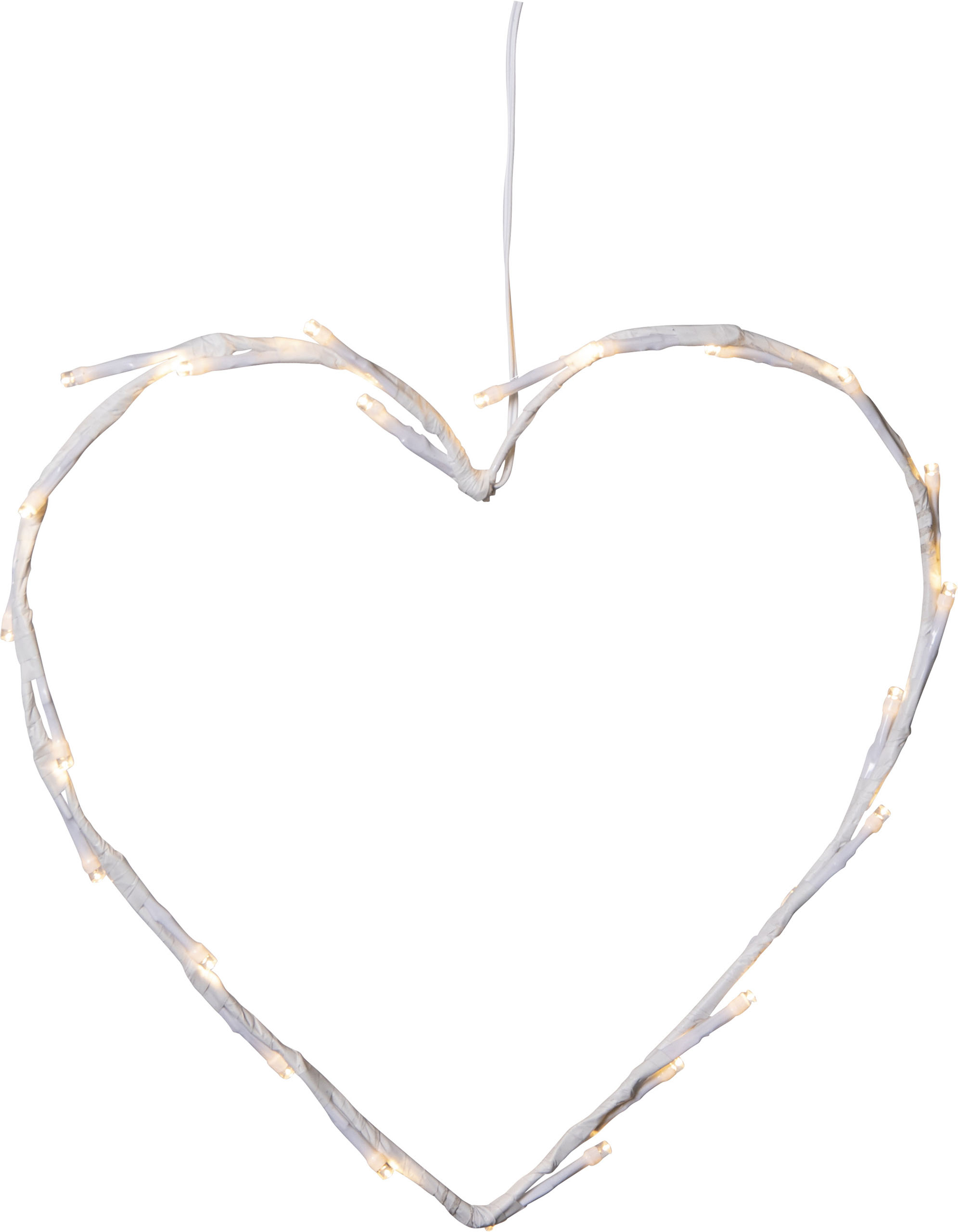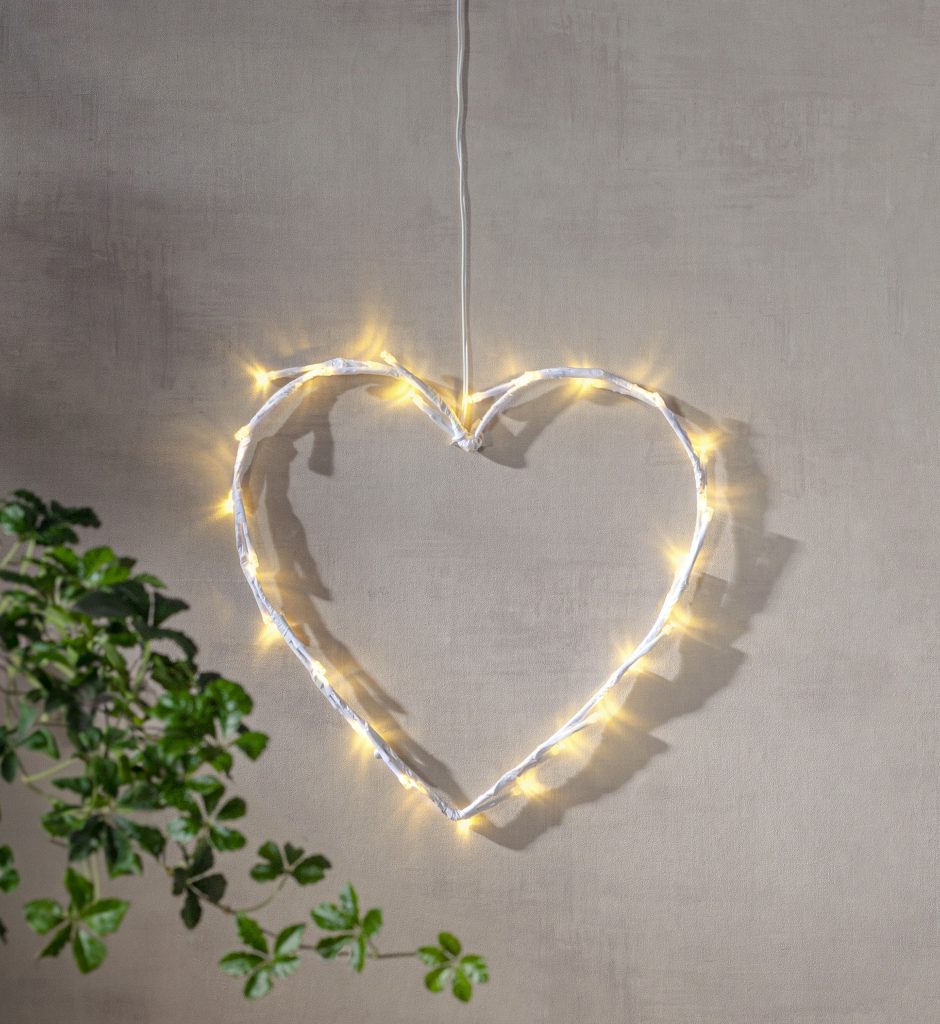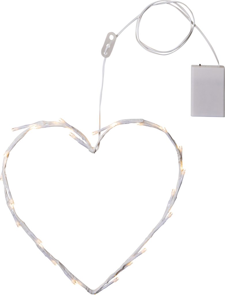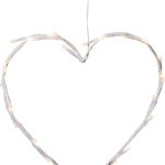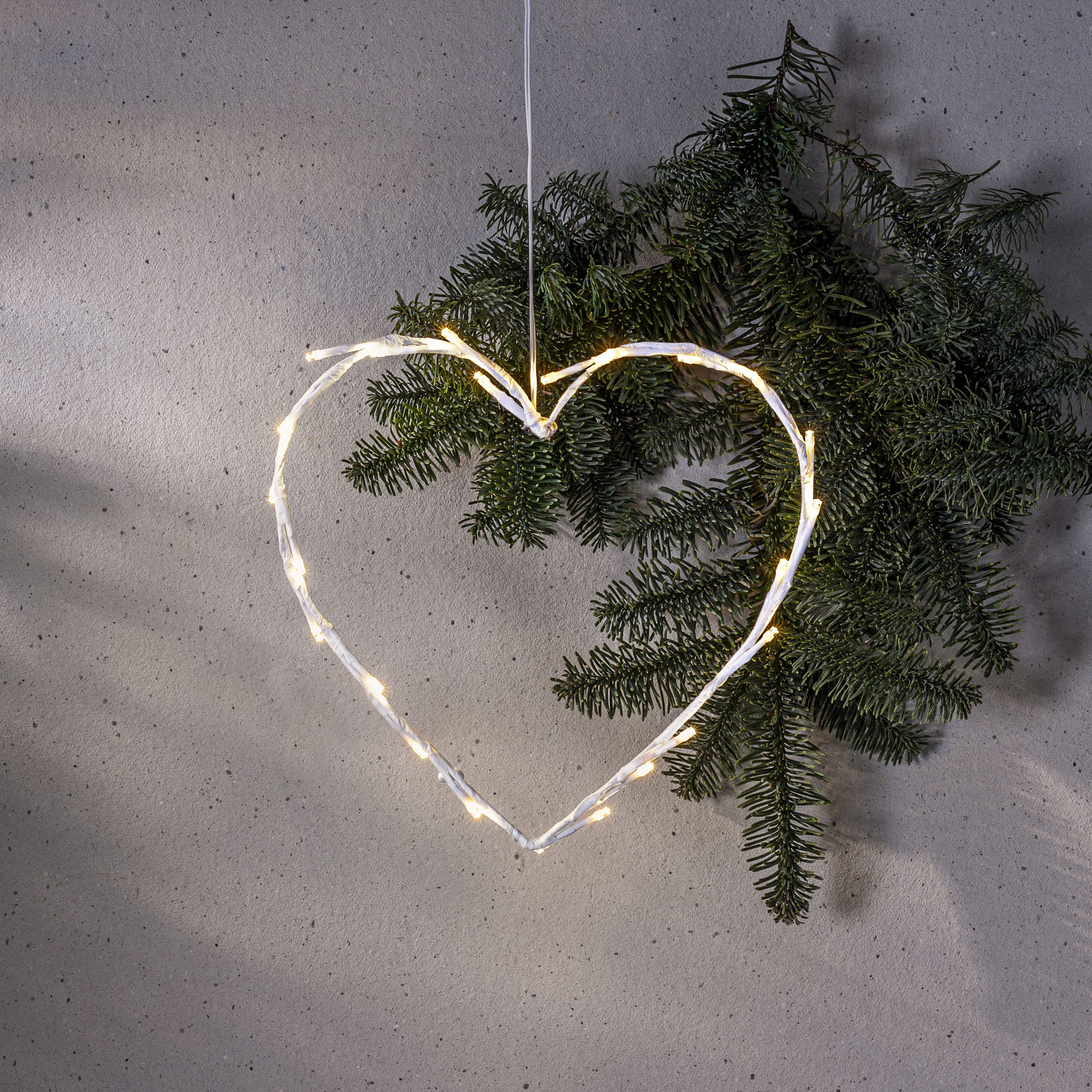 Paristokäyttöinen tyylikäs ja pelkistetty valkoinen sydänkoriste sisäkäyttöön. Koristeessa on 24 pientä LED-valopistettä, jotka loistavat lämpimän valkoista valoa. Käytä koristeena joulunaikaan tai vaikkapa heti pimeän vuodenajan alkaessa.