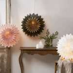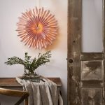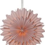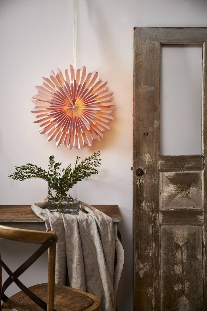 Kaunis roosan värinen paperitähti, joka on valmistettu kahdesta paperikerroksesta.