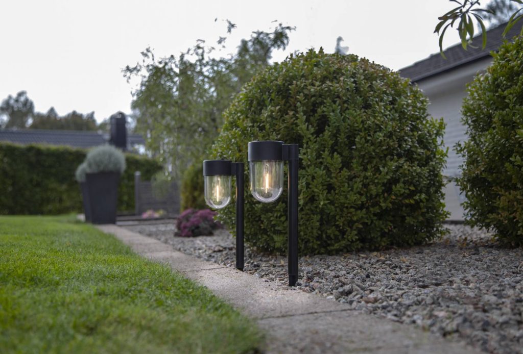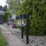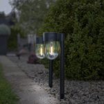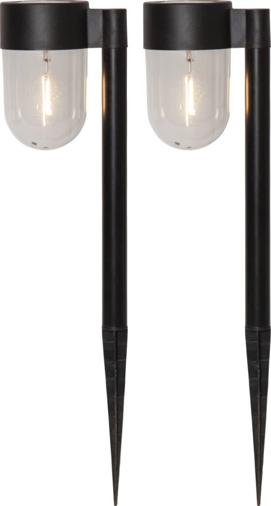 Aurinkokennolla toimiva 30 cm korkea pollari muovia. Läpinäkyvää kupolimuotoisessa kuvussa loistaa lämpimän valkoinen LED-valo. Sopii esimerkiksi puutarhaan tai terassille. Pakkaus sisältää 2 valaisinta.