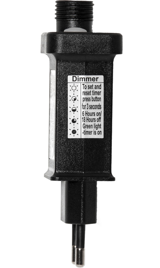 Muuntajassa on kolmivaiheinen himmennin, ja ajastinvaihtoehto, jonka avulla valot palavat 6 tunnin ajan kerrallaan ja syttyvät seuraavana päivänä samaan aikaan uudelleen.