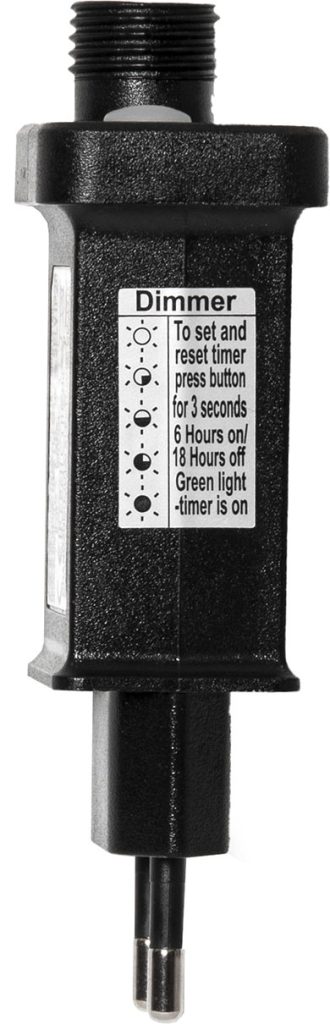 Muuntajassa on kolmivaiheinen himmennin, ja ajastinvaihtoehto, jonka avulla valot palavat 6 tunnin ajan kerrallaan ja syttyvät seuraavana päivänä samaan aikaan uudelleen.