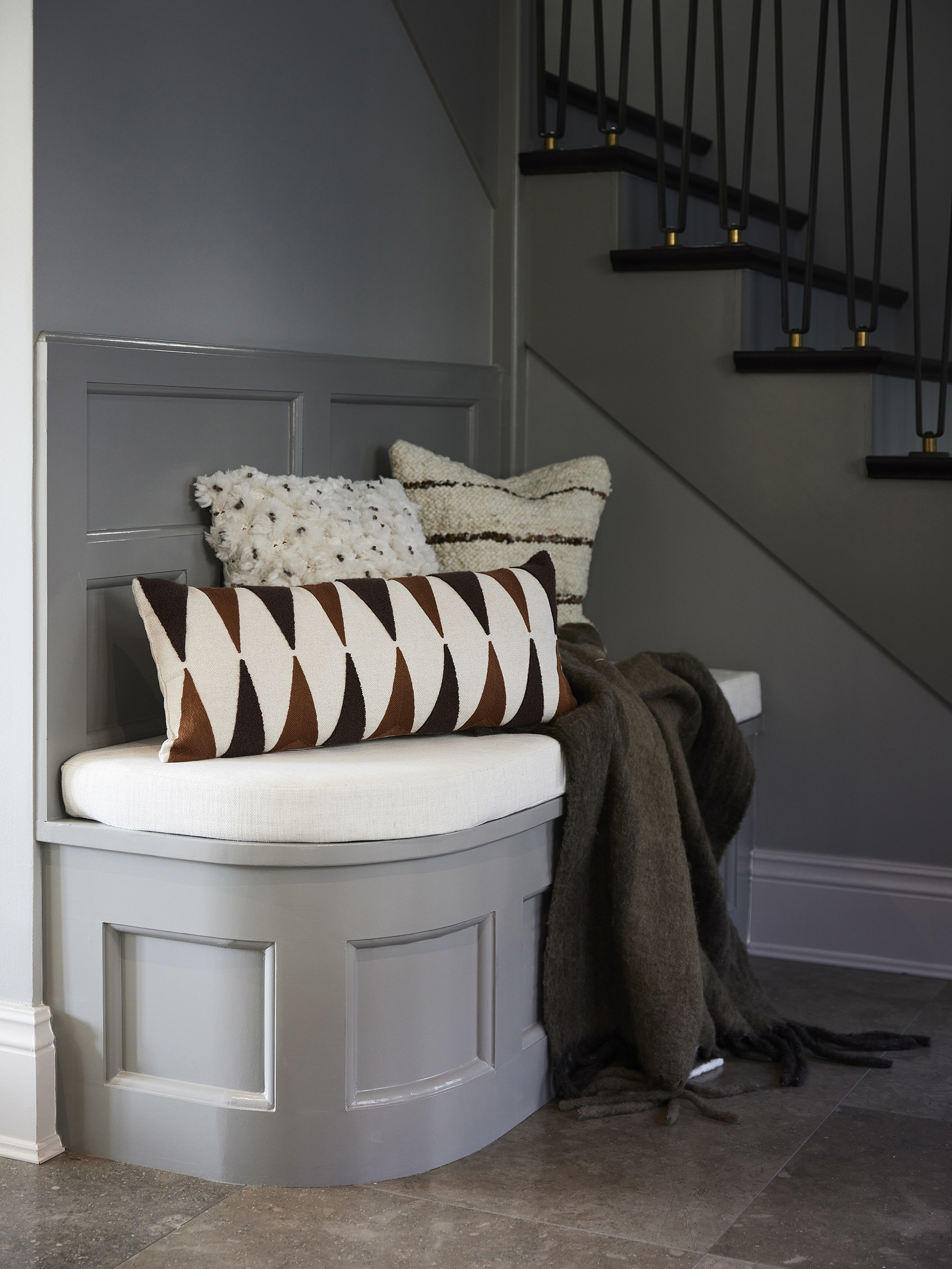 Dani-tyynynpäällisen etupuoli on tiukkaan kudottua uusiseelantilaista villaa. Taustapuoli on vahvaa puuvillakangasta, piilovetoketju.