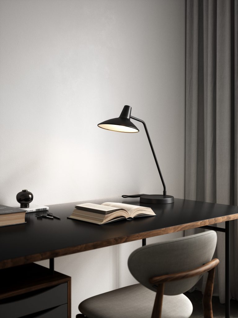 Pöytävalaisin mustaa, mattapintaista metallia.