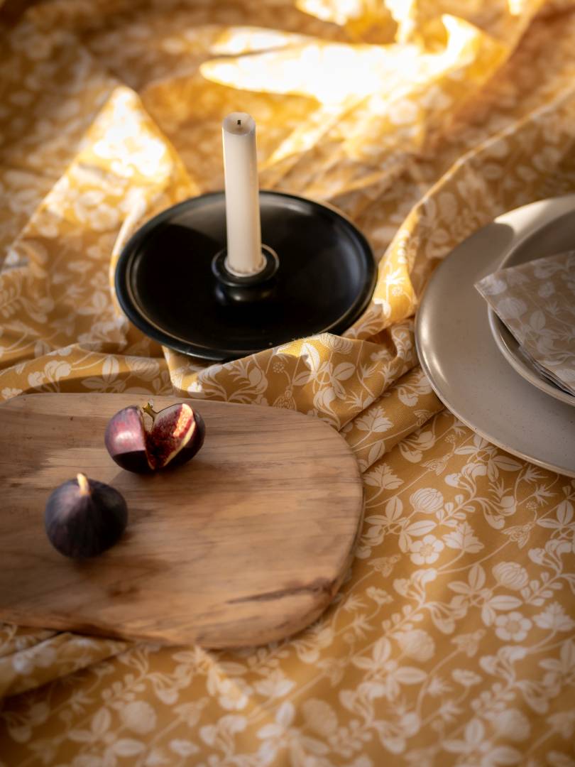 Täydennä kattaus sävyyn sopivilla kangasserveteillä ja alusliinalla.