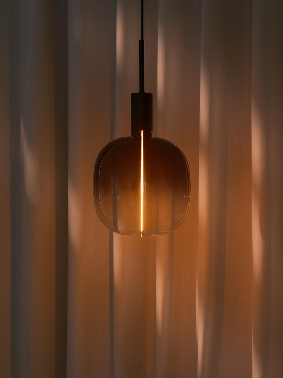 Tämä ylisuuri koristeellinen savulasilamppu luo elegantin katseenvangitsijan, yhdistettiinpä se sitten yksinkertaiseen lampunpidikkeeseen tai minimalistiseen valaisimeen. Lamppu on himmennettävä.