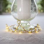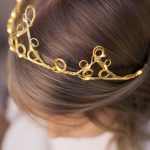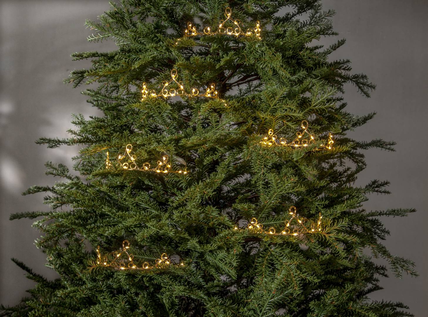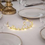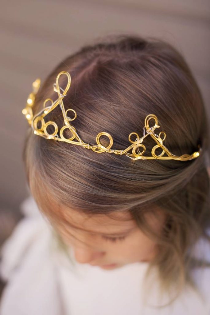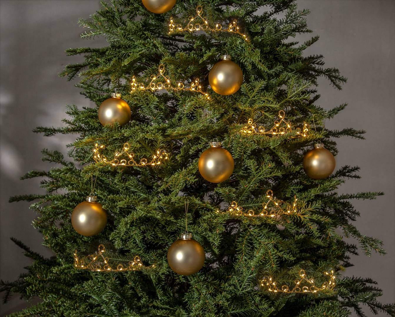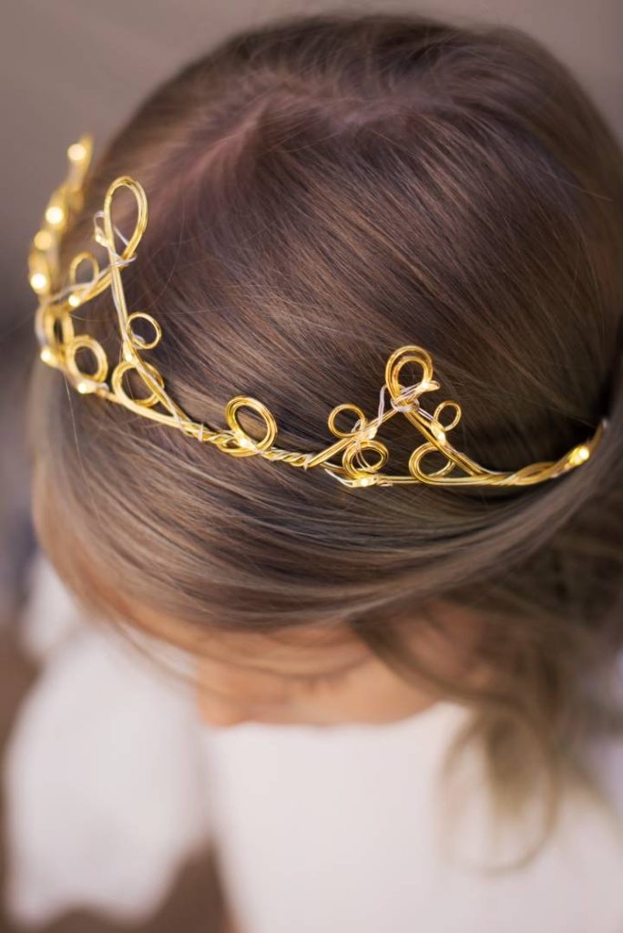 Messingin värinen paristokäyttöinen tiara-koriste sisäkäyttöön. Sopii esimerkiksi