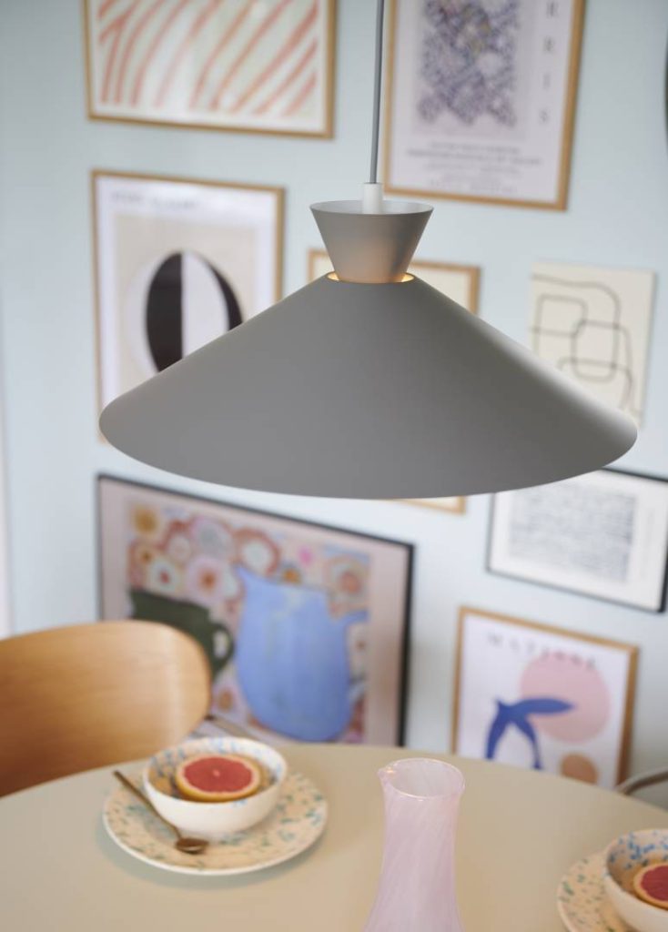Metallista valmistettu Dial on moderni ja trendikäs, skandinaavinen ja käytännöllinen riippuvalaisin, jonka muotoilun inspiraationa ovat olleet 50-luvun valaisimet. Varjostimen avoin, geometrinen muoto luo hyvän valaistuksen. Varjostin on yläosasta avoin, joten Dial-riippuvalaisin valaisee myös ylöspäin.