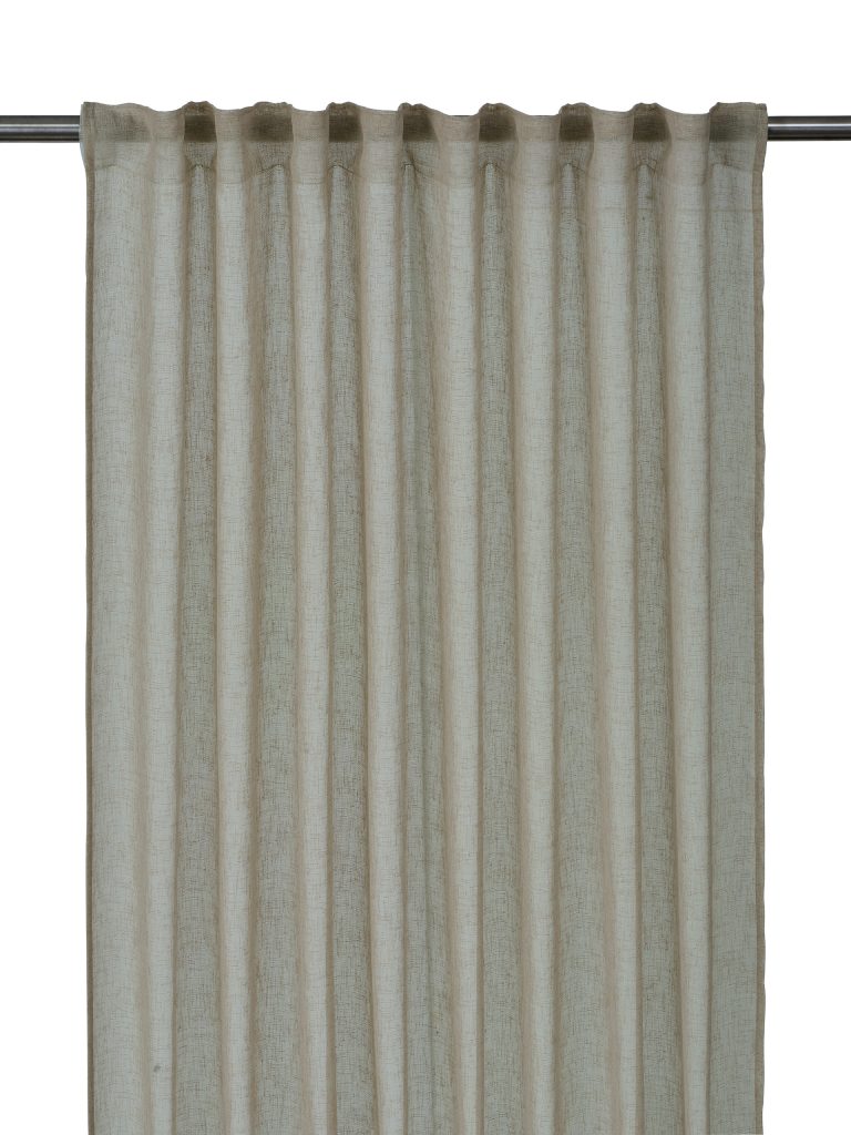 Läpikuultava tuplaleveä pitkä verho monitoiminauhalla. Läpikuultavassa polyesterikankaassa on kaunis struktuuri ja pientä värivaihtelua, jotka tekevät siitä eläväpintaisen. Verhoissa on monitoiminauha yläreunassa, päärmätyt sivureunat ja yliluotteluommel alareunassa. Pakkaus sisältää 1 verhon.