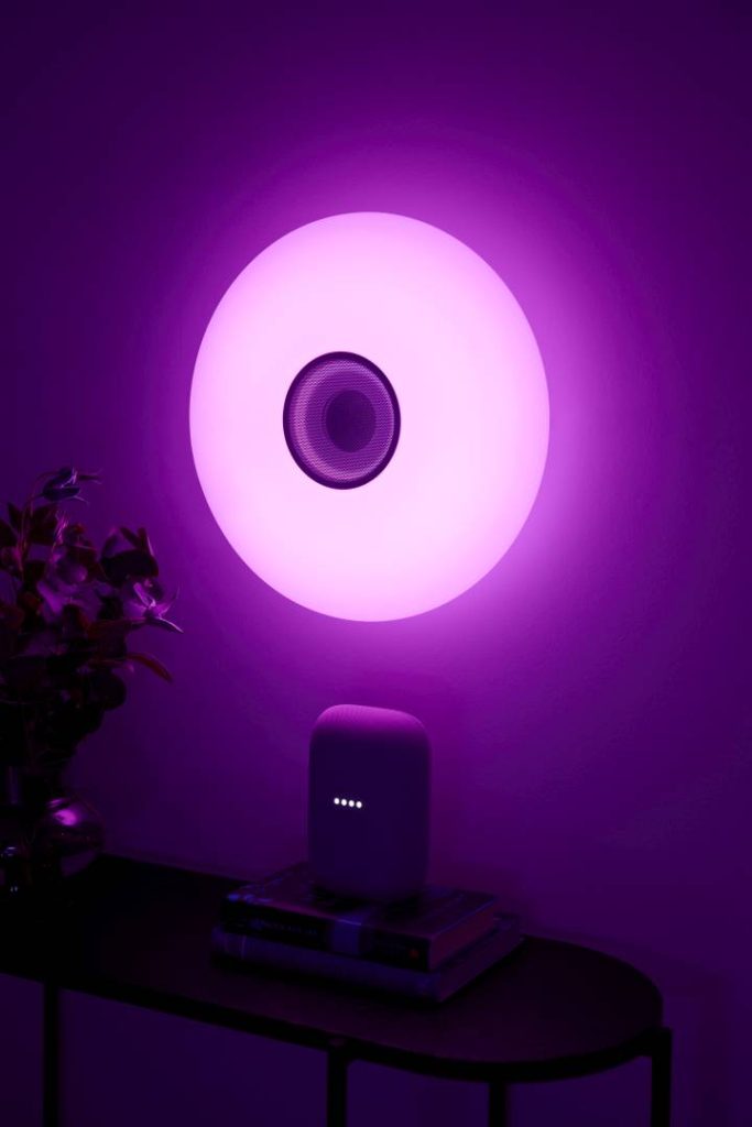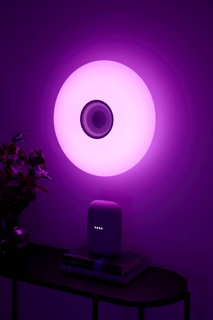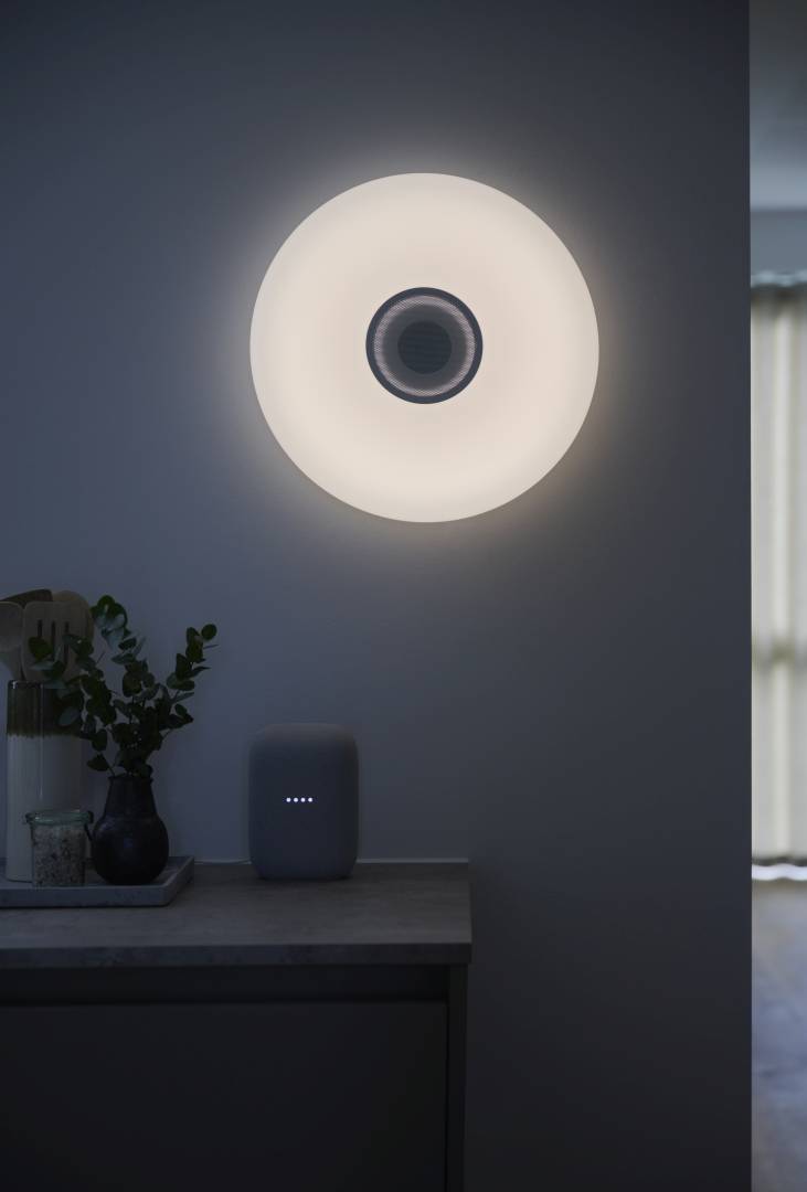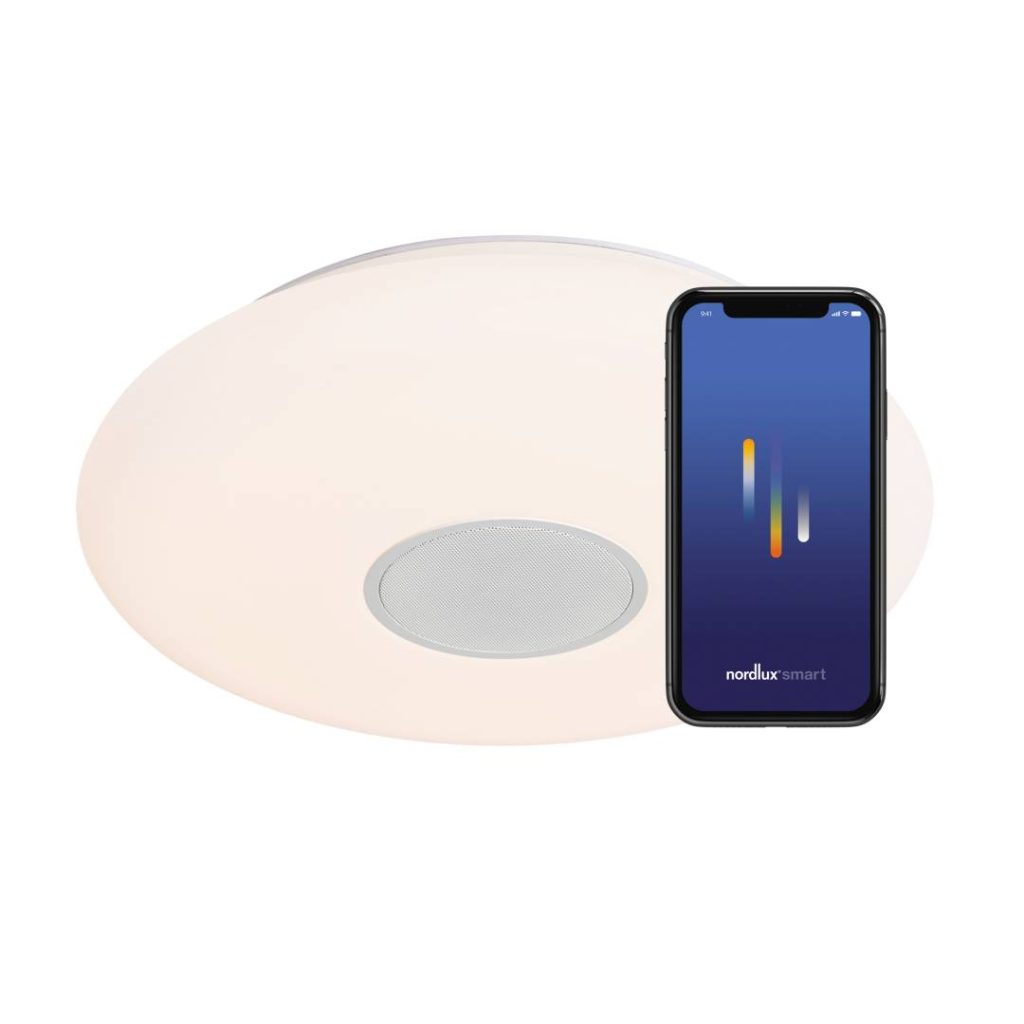 Plafondissa yhdistyy elegantti valaisin käytännölliseen Bluetooth-kaiuttimeen. Valaisinta ja kaiutinta ohjataan Nordlux Smart Light -sovelluksella.