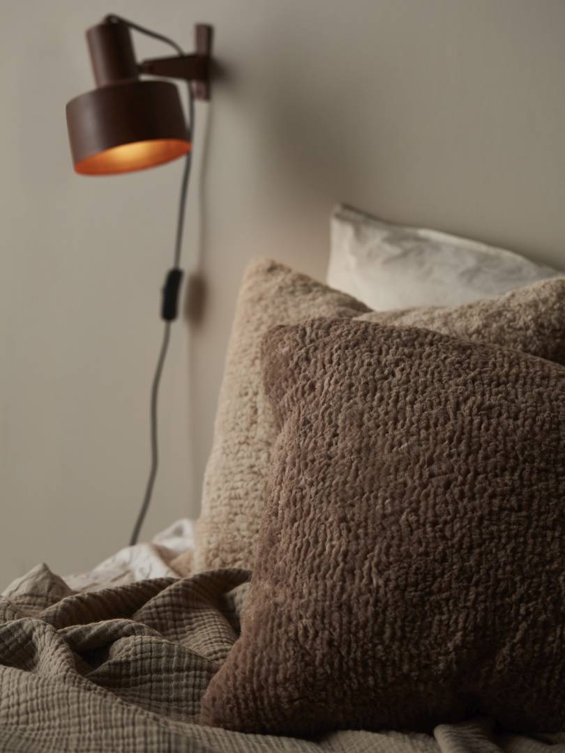 Tyynynpäällinen lampaanvillajäljitelmää. Vetoketju alareunassa.