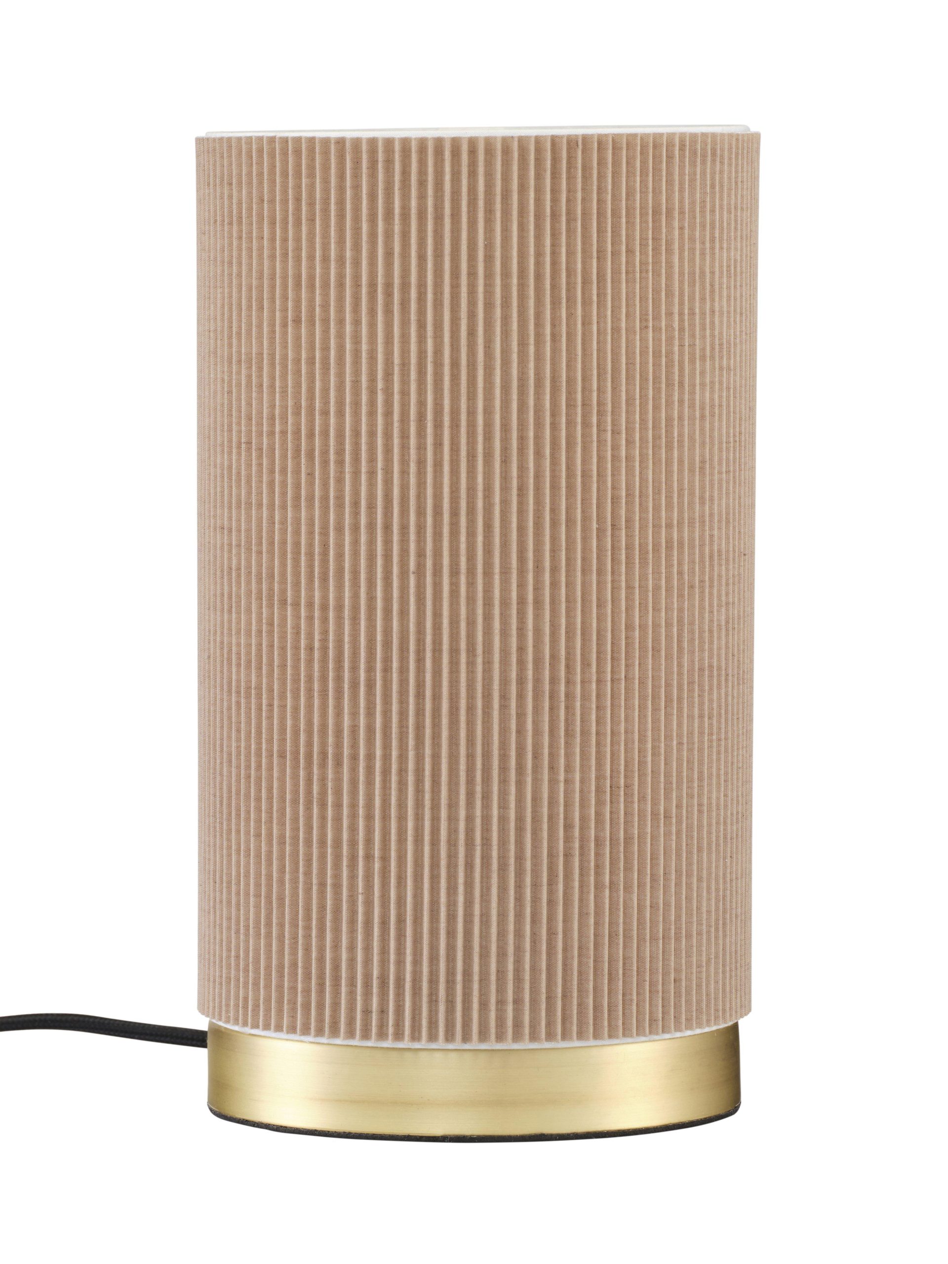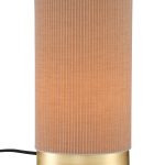 Tyylikkään Dora-pöytävalaisimen runko on kullanväristä metallia ja varjostin polyesteri-puuvillasekoitetta. Varjostinta ei voi irrottaa.