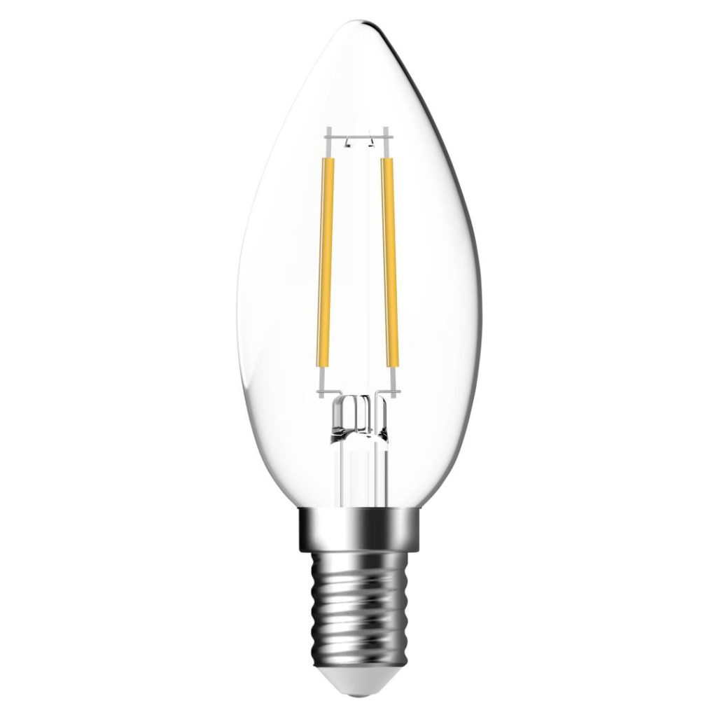 LED-kynttilälamppu kirkkaalla lasilla. Vastaa 25W hehkulamppua.