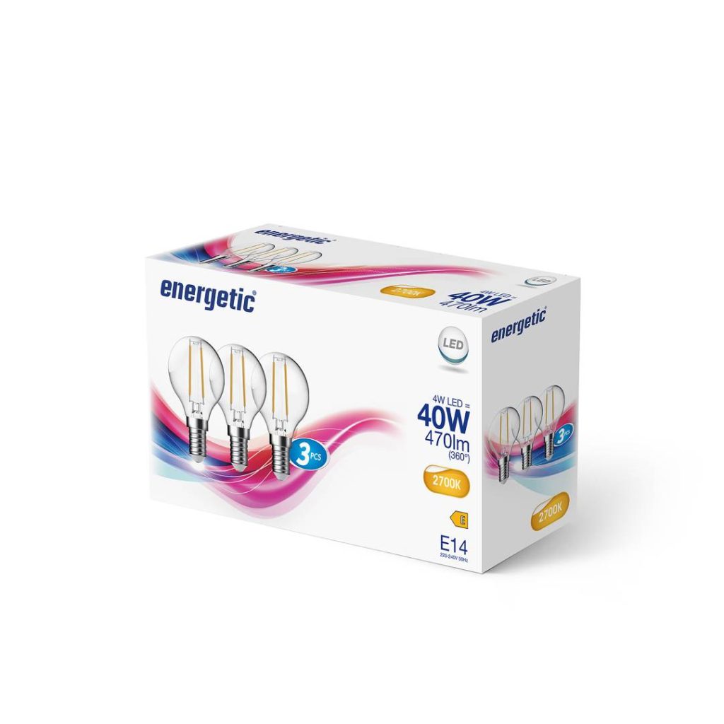 LED-lamppu kirkkaalla lasilla. Vastaa 40W hehkulamppua.