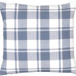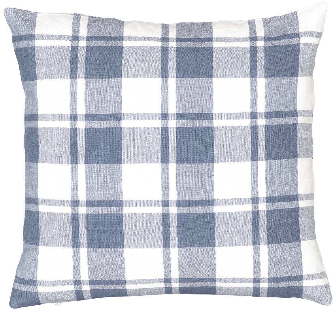 Puuvillainen tyynynpäällinen lankavärjätyillä ruuduilla. Vetoketju alareunassa.