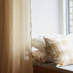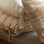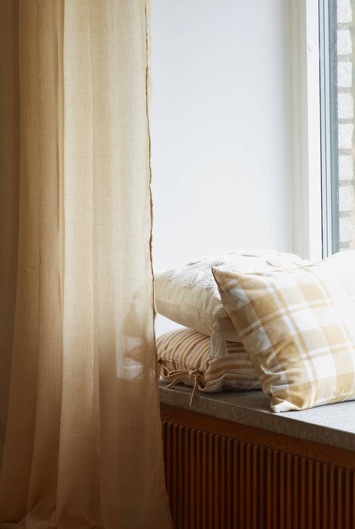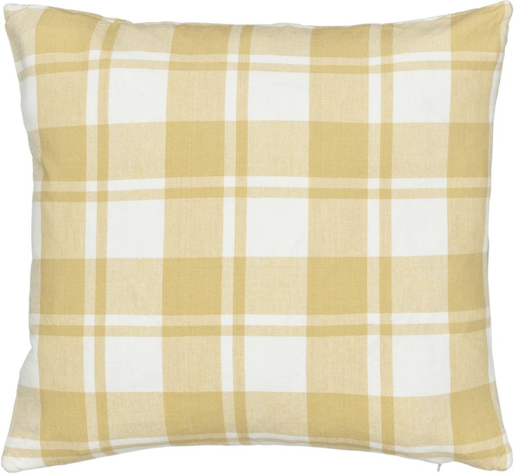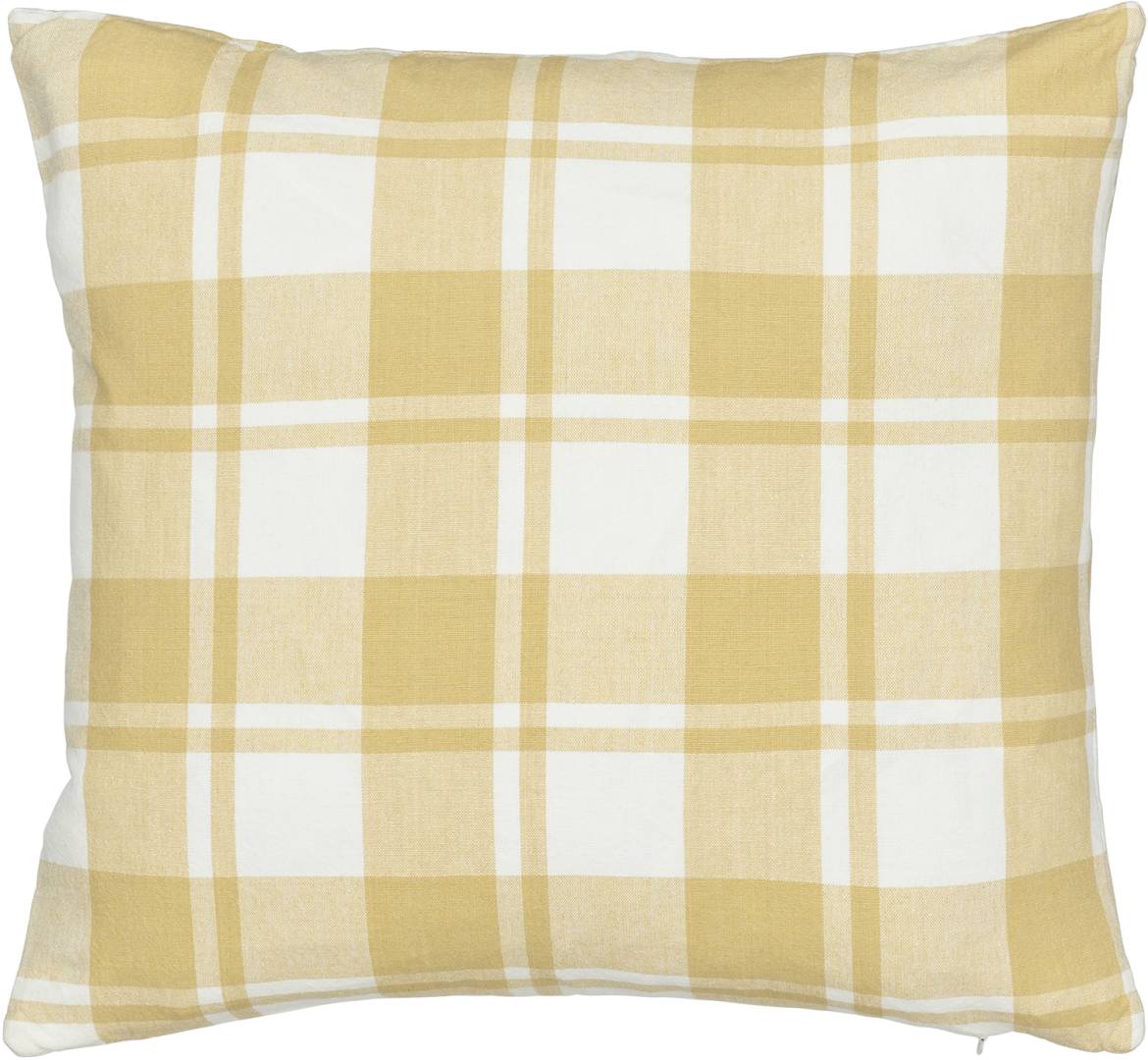 Puuvillainen tyynynpäällinen lankavärjätyillä ruuduilla. Vetoketju alareunassa.