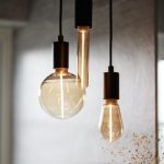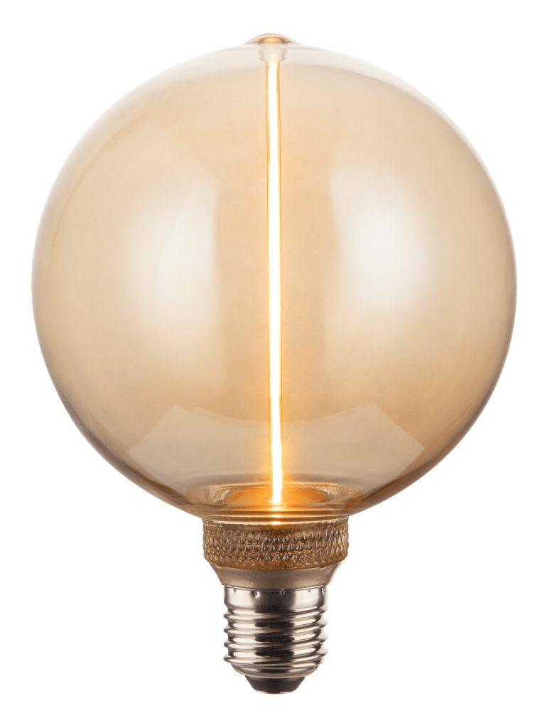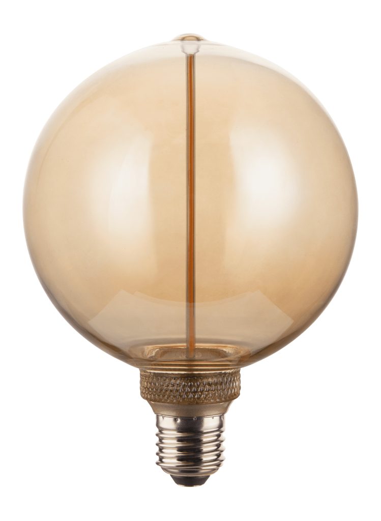 Koristeellinen LED-lamppu meripihkan värisellä lasilla. Himmennettävä.