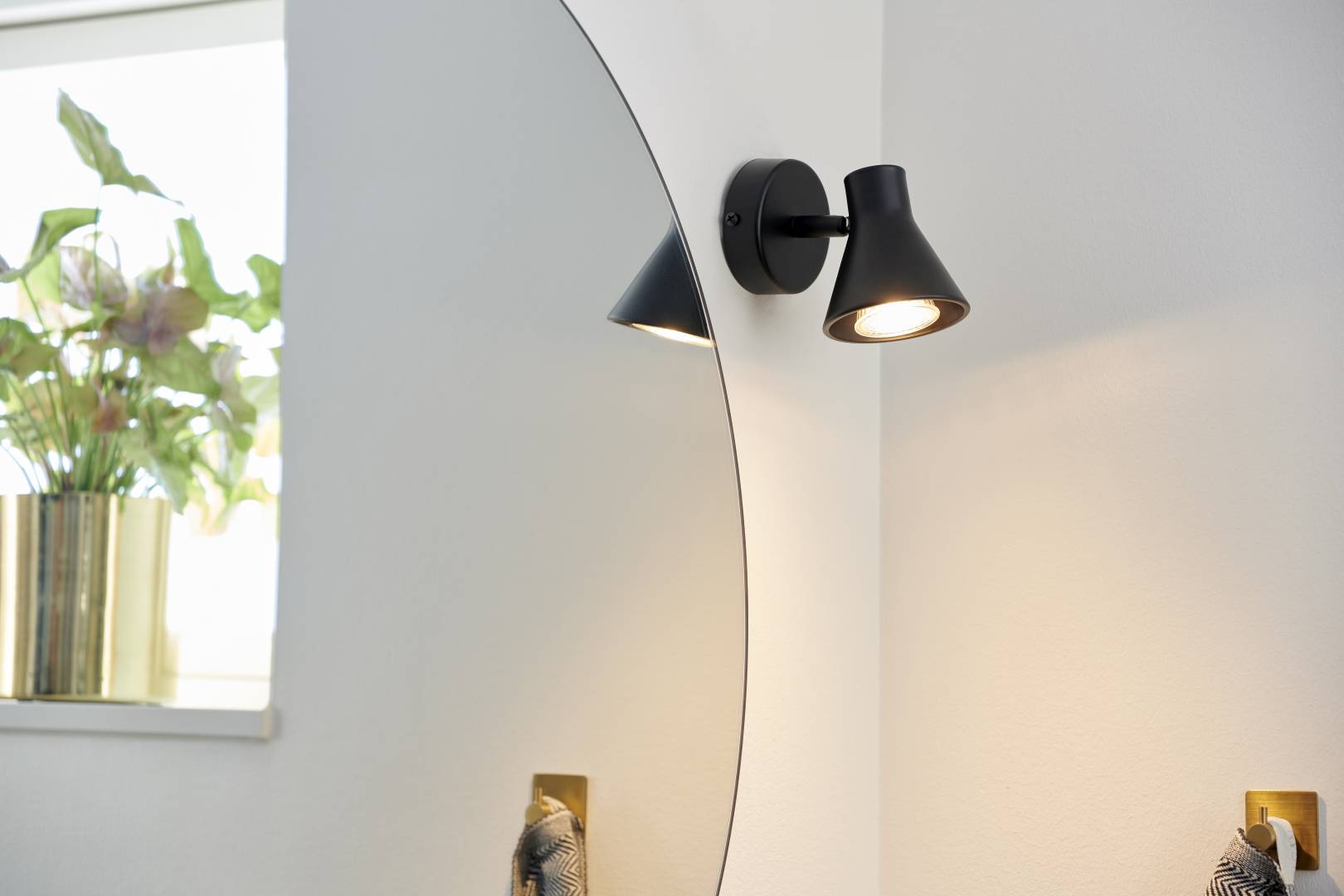 Pelkistetty, moderni seinävalaisin mattamustaa metallia. Sopii moniin eri sisustustyyleihin. Valaisimen voi asentaa myös kattospotiksi.