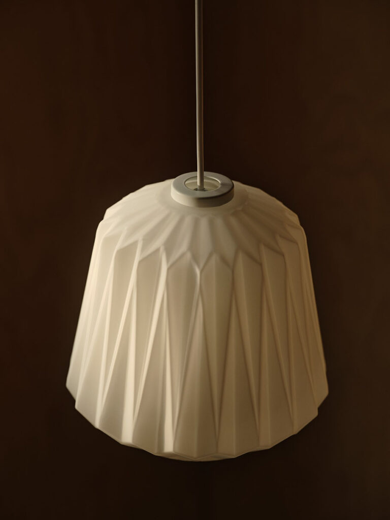 Elbie yhdistää klassisen muodon moderniin yksinkertaisuuteen. Mattapintainen opaalilasinen varjostin luo pehmeää, hajautettua valoa, ja lämpimän ja kutsuvan tunnelman. Hienovaraiset laskostetut yksityiskohdat lisäävät eleganttiin muotoiluun tekstuuria ja luonnetta.