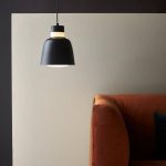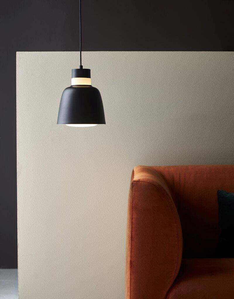 Kattovalaisin mustaa metallia ja opaalivalkoista lasia.