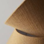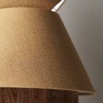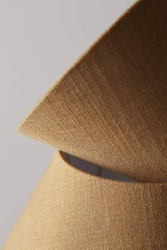 Lampunvarjostin pellavan tuntuista kangasta.