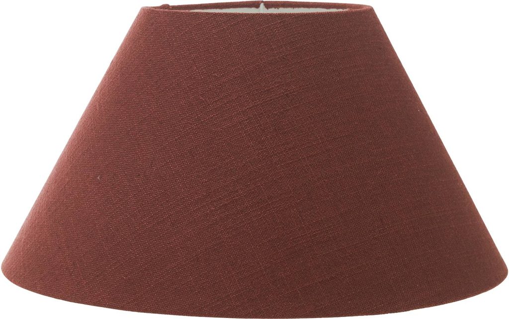 Lampunvarjostin pellavan tuntuista kangasta.