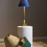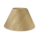 Lampunvarjostin keinosilkkiä. Varjostimen sisäpuoli on kiiltävä ja kullanvärinen, mikä saa valon loistamaan kauniisti.