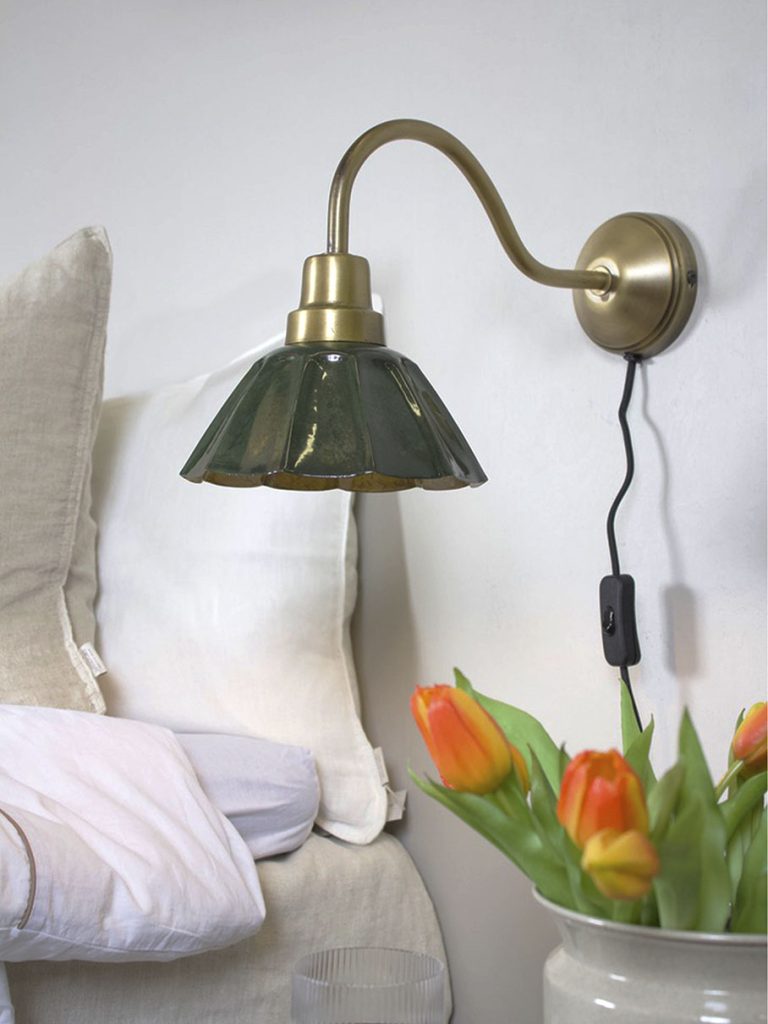 Ester on kaunis vintage-tyylinen seinävalaisin, jonka metallivarjostimessa on marmoria muistuttava emaloitu pinta. Seinälevy sekä taivutettu varsi ovat antiikkimessingin värisiä.