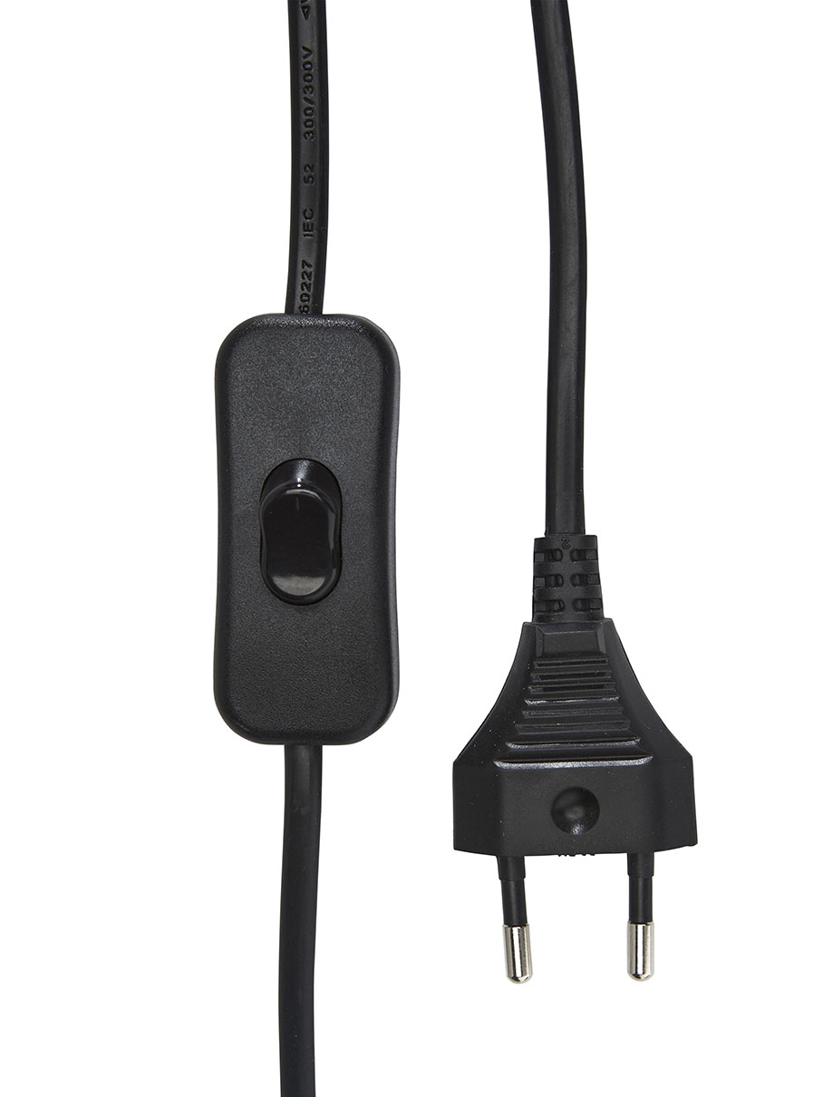 Valaisimessa on 200 cm pitkä musta tekstiilijohto katkaisijalla.