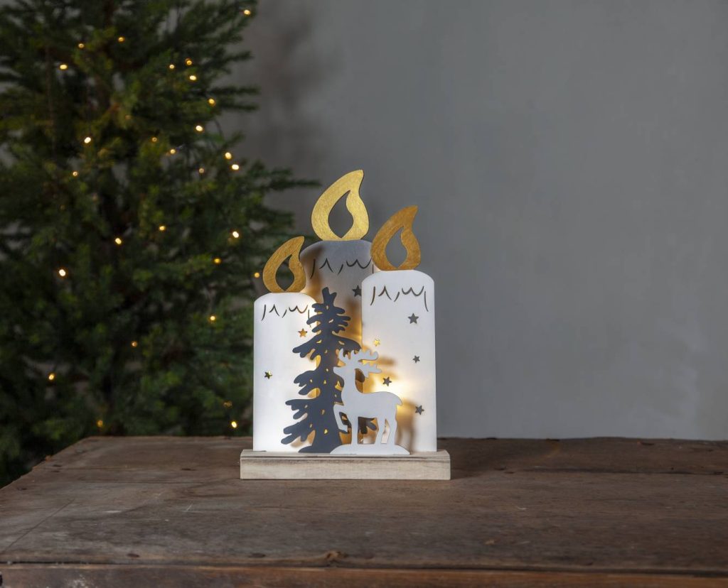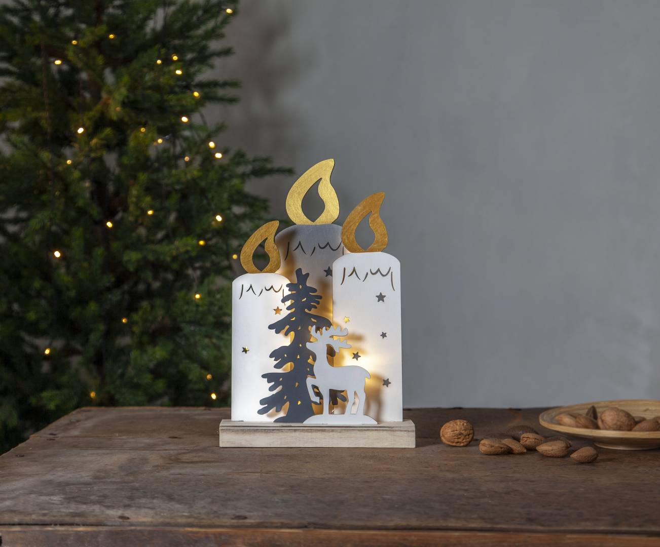 Pöytäkoriste puuta. Sisäkäyttöön. Valon sävy: lämmin valkoinen.