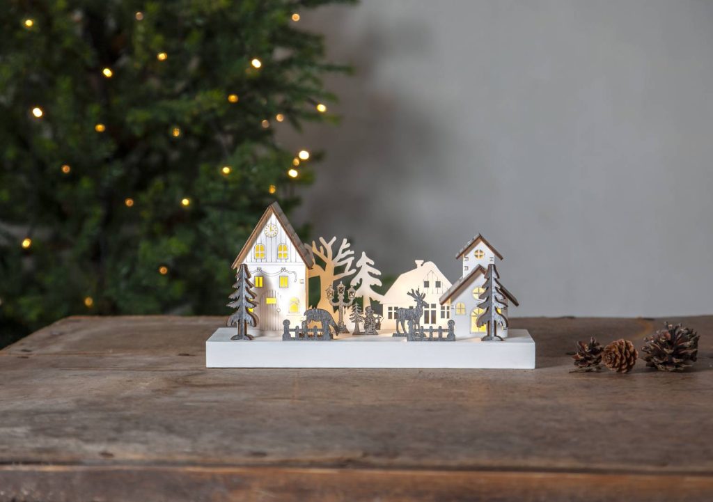 Pöytäkoriste puuta. Sisäkäyttöön. Valon sävy: lämmin valkoinen.
