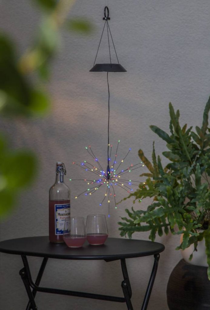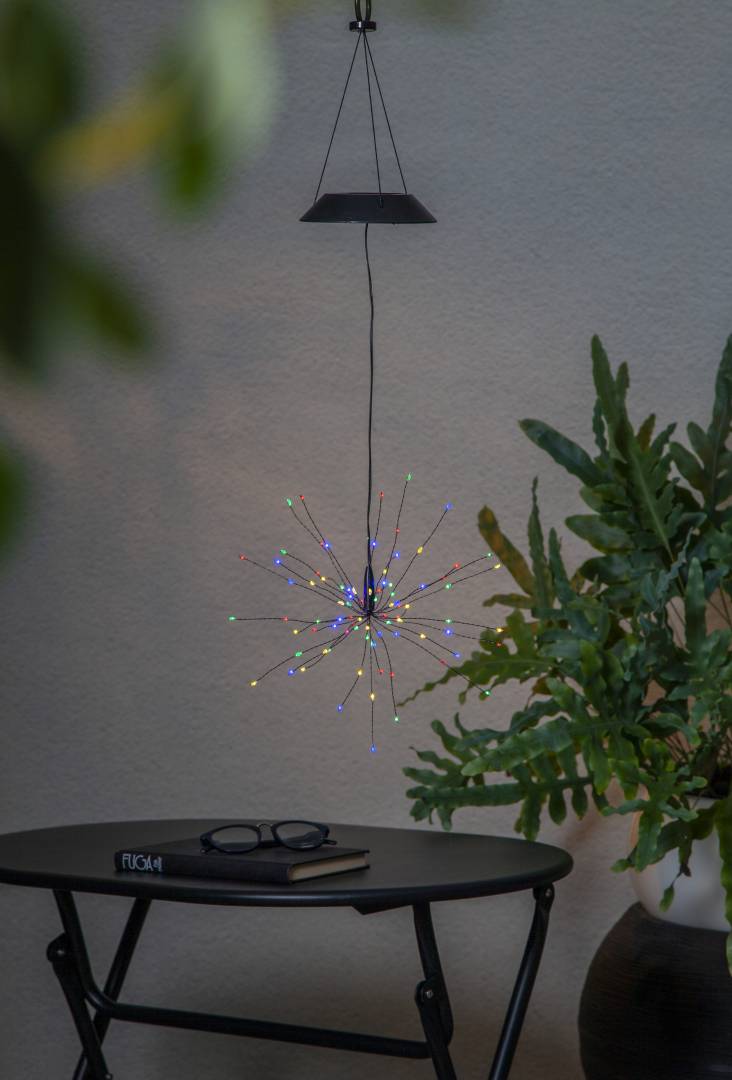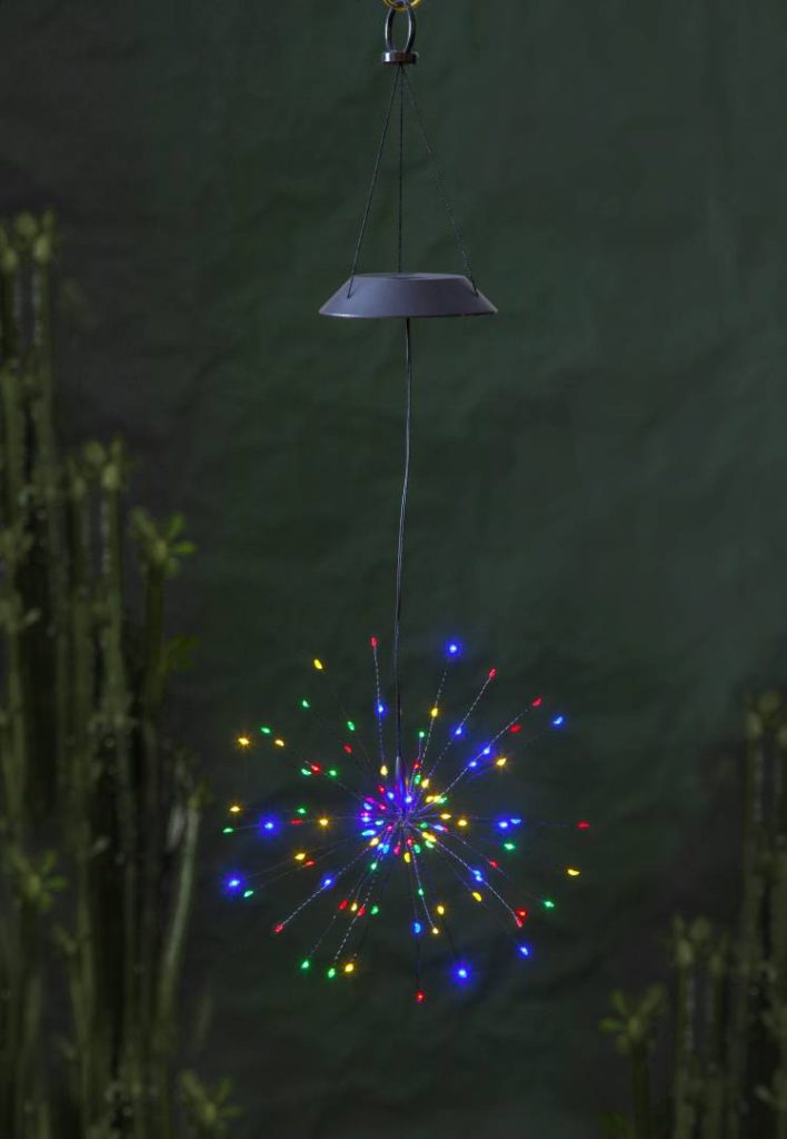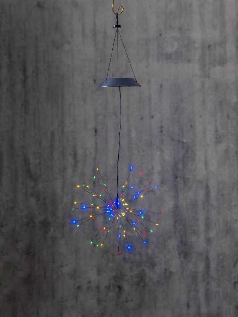 Aurinkokennolla toimiva ripustettava Firework-koristevalaisin, jossa on 90 värikästä LED-valopistettä.