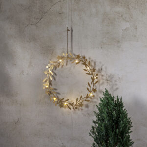 Upea kullanvärinen koristekranssi sisäkäyttöön. Sopii sekä seinälle että ikkunaan ripustettavaksi.