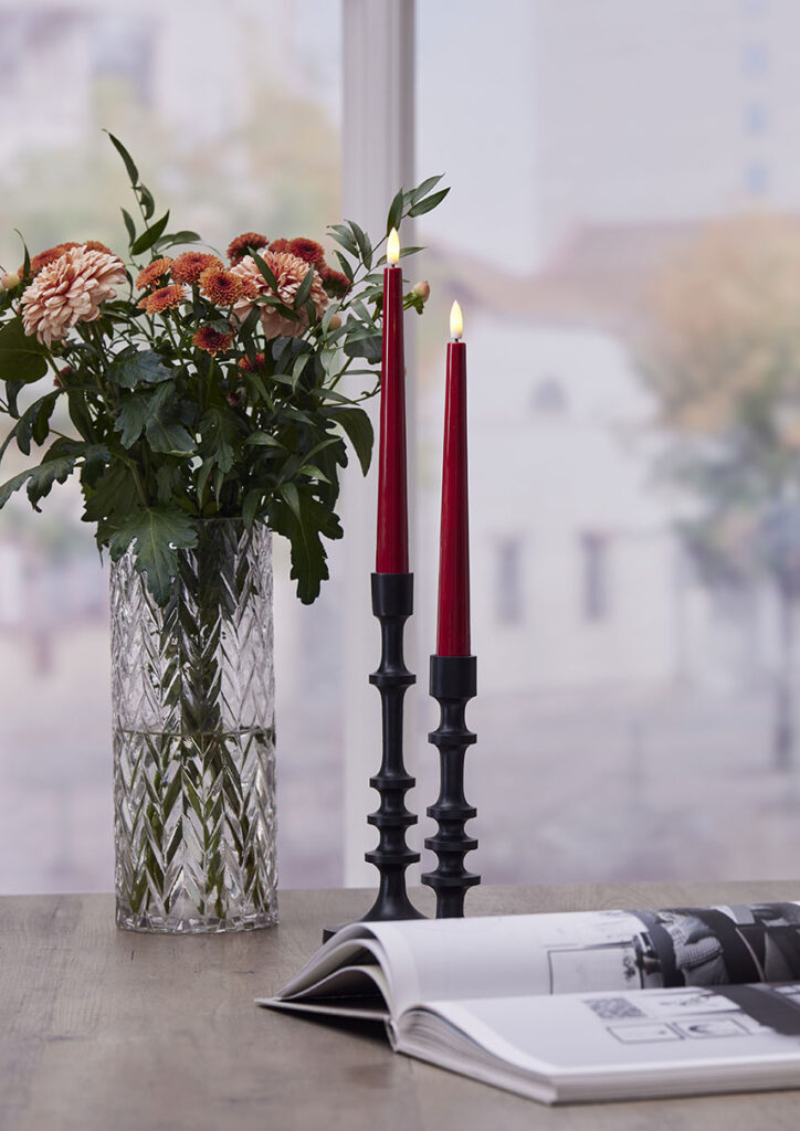 Flamme Candy on muovista valmistettu LED-antiikkikynttilä aidon näköisellä lämpimän valkoisella Flamme-liekillä. Pakkaus sisältää kaksi kynttilää.